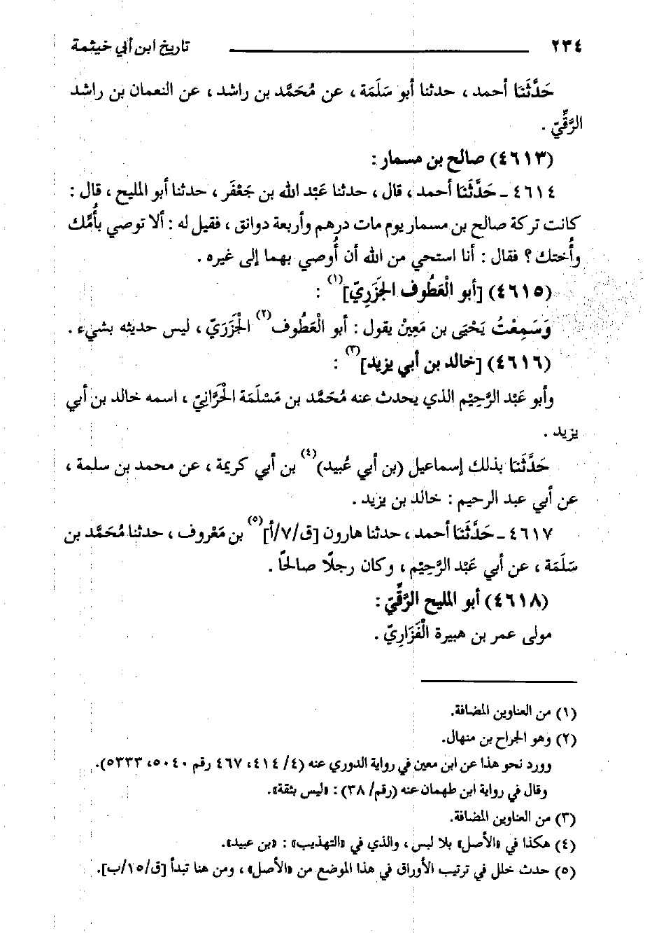 كتاب التاريخ الكبير لابن أبي خيثمة - السفر الثالث - ط الفاروق (اسم الجزء: 3)