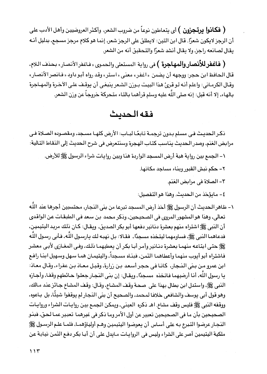 ذكر الحديث في مسلم بدون ترجمة تابعًا لباب: الأرض كلها مسجد، ومقصوده الصلاة في مرابض الغنم، وصدر الحديث يناسب كتاب الهجرة وسنتعرض في شرح الحديث إلى النقاط التالية: