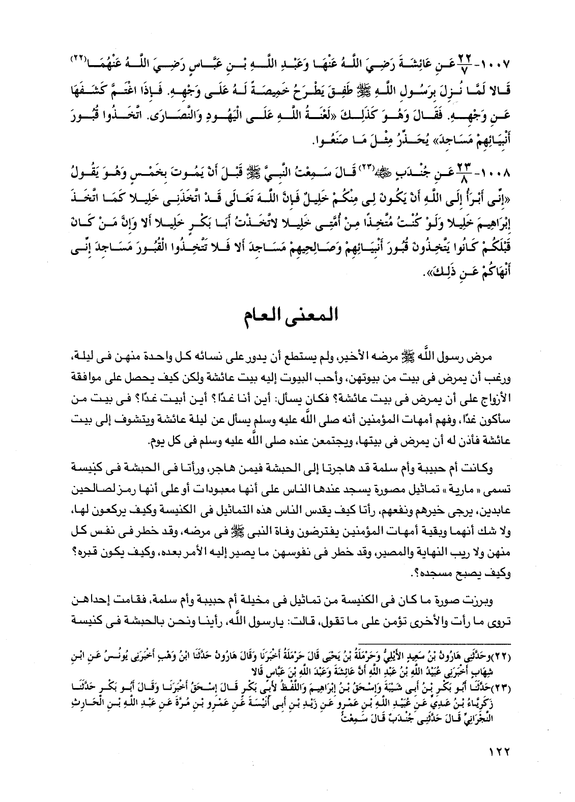 1007 - عن عائشة رضي الله عنها وعبد الله بن عباس رضي الله عنهما قالا لما نزل برسول الله صلى الله عليه وسلم طفق يطرح خميصة له على وجهه. فإذا اغتم كشفها عن وجهه. فقال وهو كذلك "لعنة اللَّه على اليهود والنصارى. اتخذوا قبور أنبيائهم مساجد" يحذر مثل ما صنعوا.