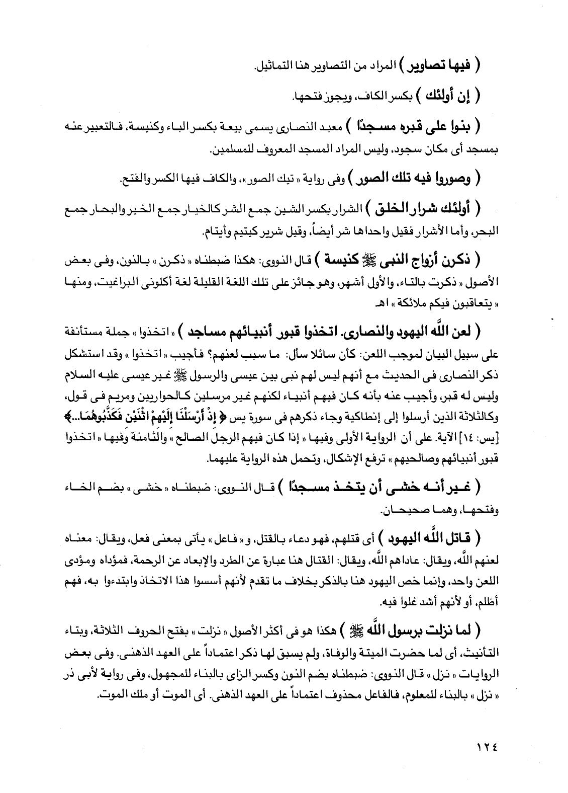 (بنوا على قبره مسجدًا) معبد النصارى يسمى بيعة بكسر الباء وكنيسة، فالتعبير عنه بمسجد أي مكان سجود، وليس المراد المسجد المعروف للمسلمين.
