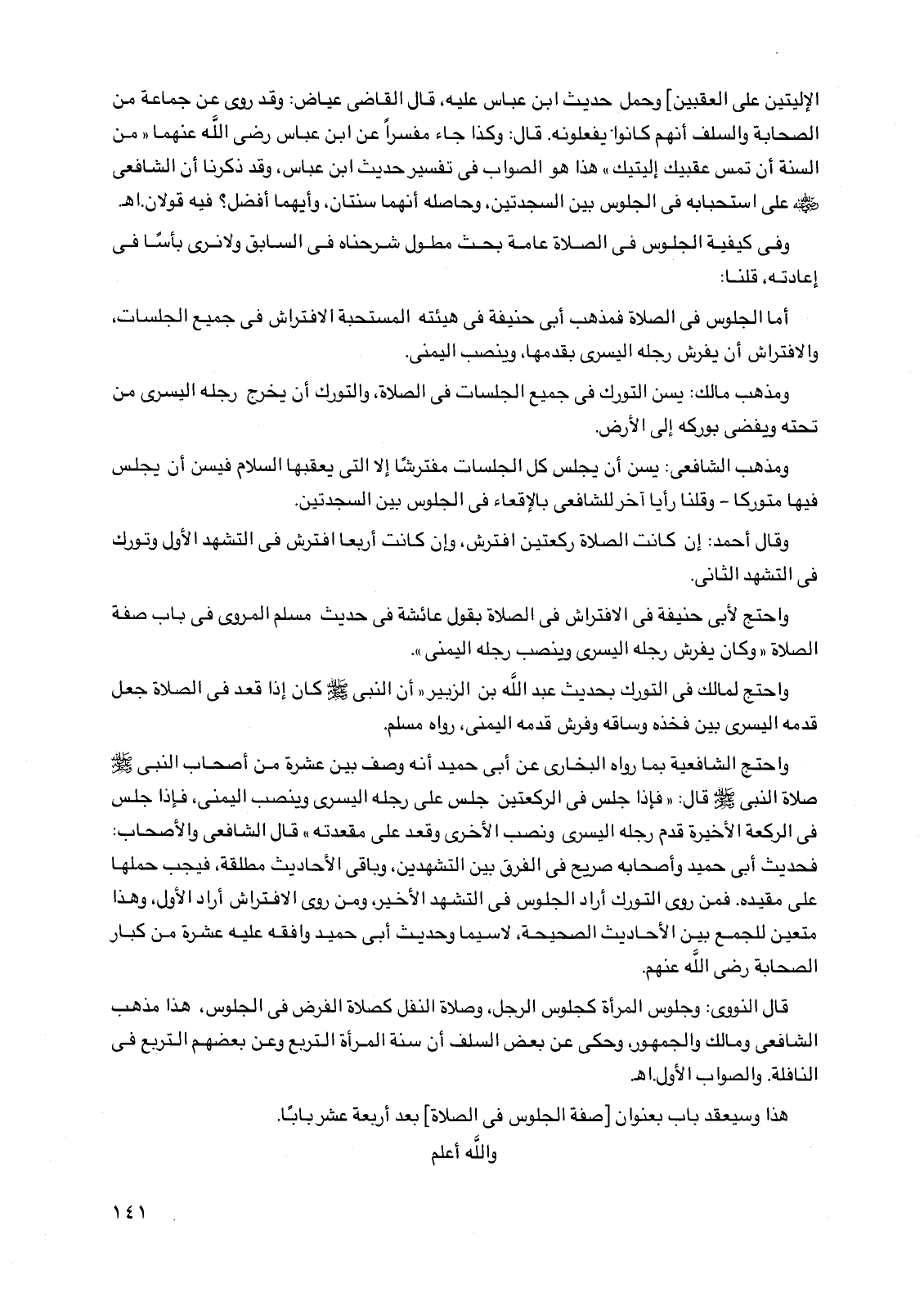 هذا وسيعقد باب بعنوان [صفة الجلوس في الصلاة] بعد أربعة عشر بابًا.