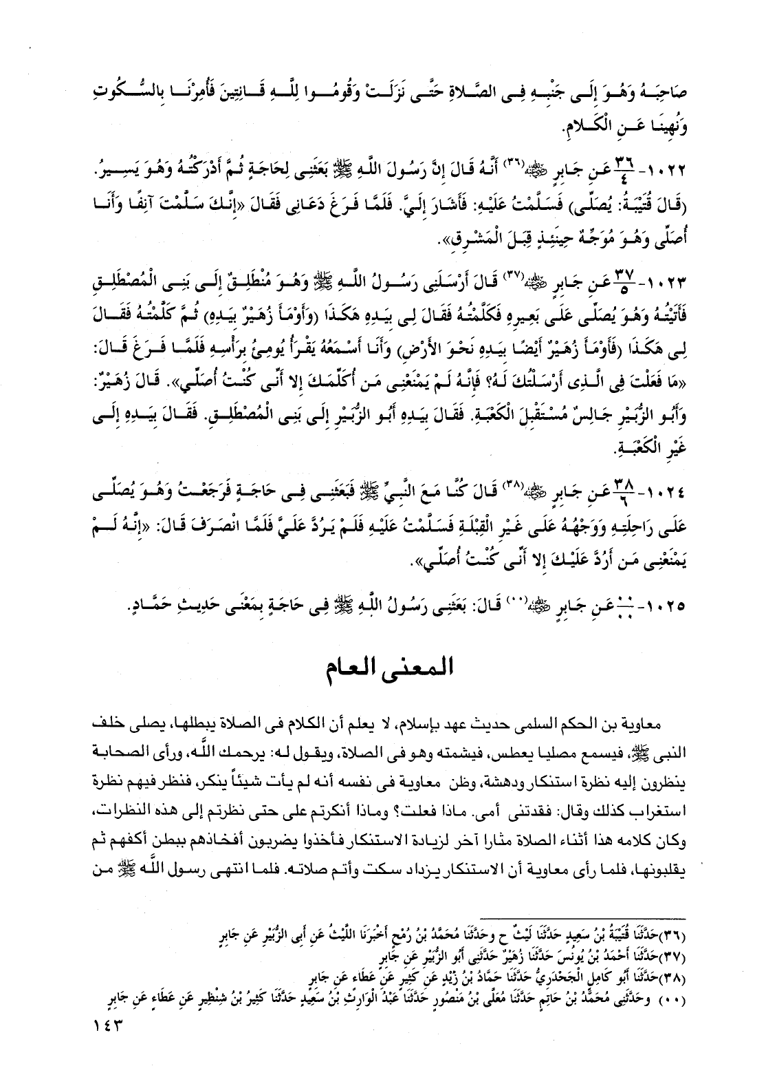 1022 - عن جابر رضي الله عنه أنه قال إن رسول الله صلى الله عليه وسلم بعثني لحاجة ثم أدركته وهو يسير. (قال قتيبة: يصلي) فسلمت عليه: فأشار إلي. فلما فرغ دعاني فقال "إنك سلمت آنفًا وأنا أصلي وهو موجه حينئذ قبل المشرق".