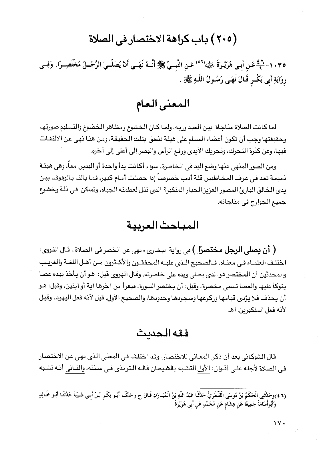 (205) باب كراهة الاختصار في الصلاة