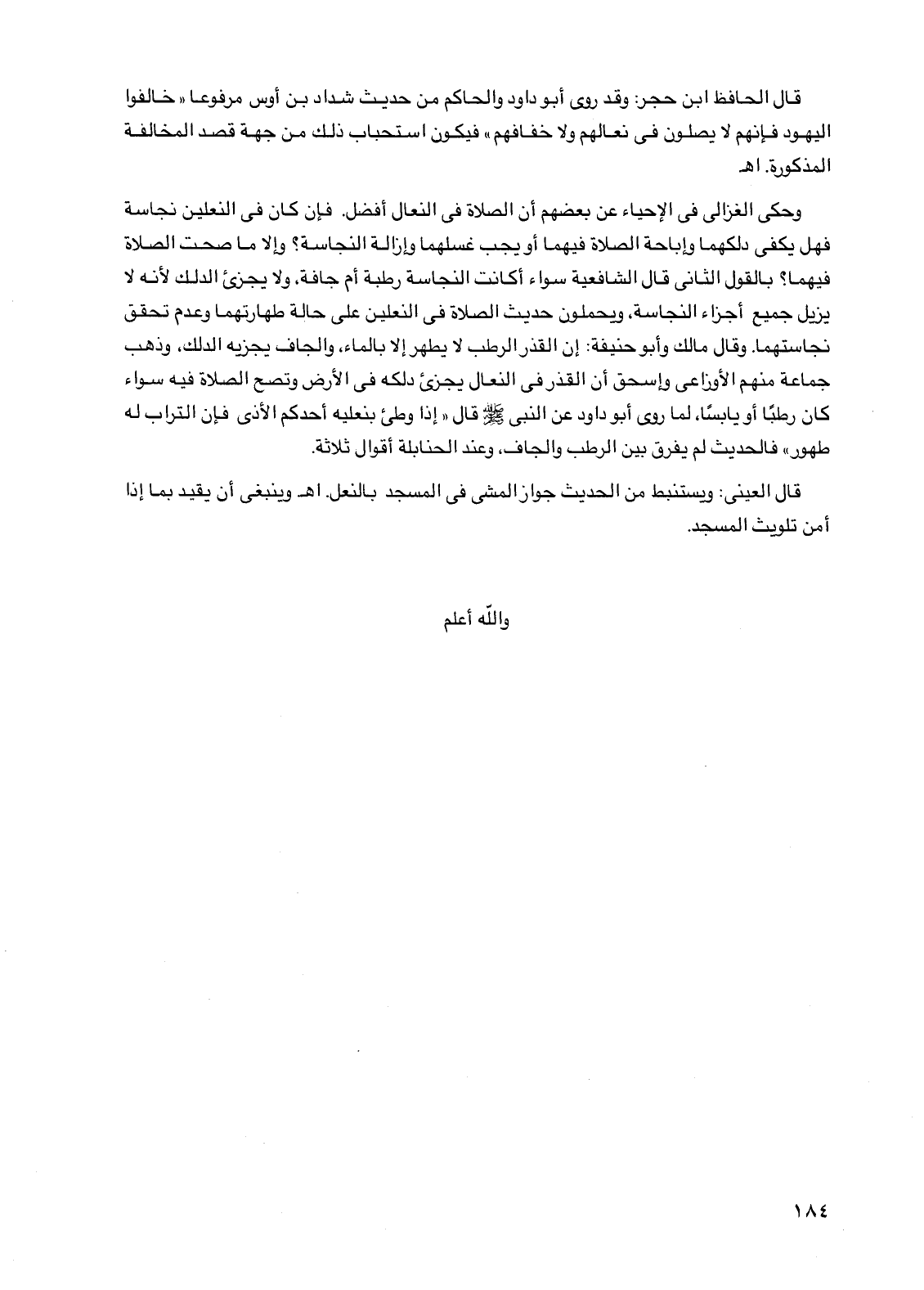 قال العيني: ويستنبط من الحديث جواز المشي في المسجد بالنعل. اهـ. وينبغي أن يقيد بما إذا أمن تلويث المسجد.