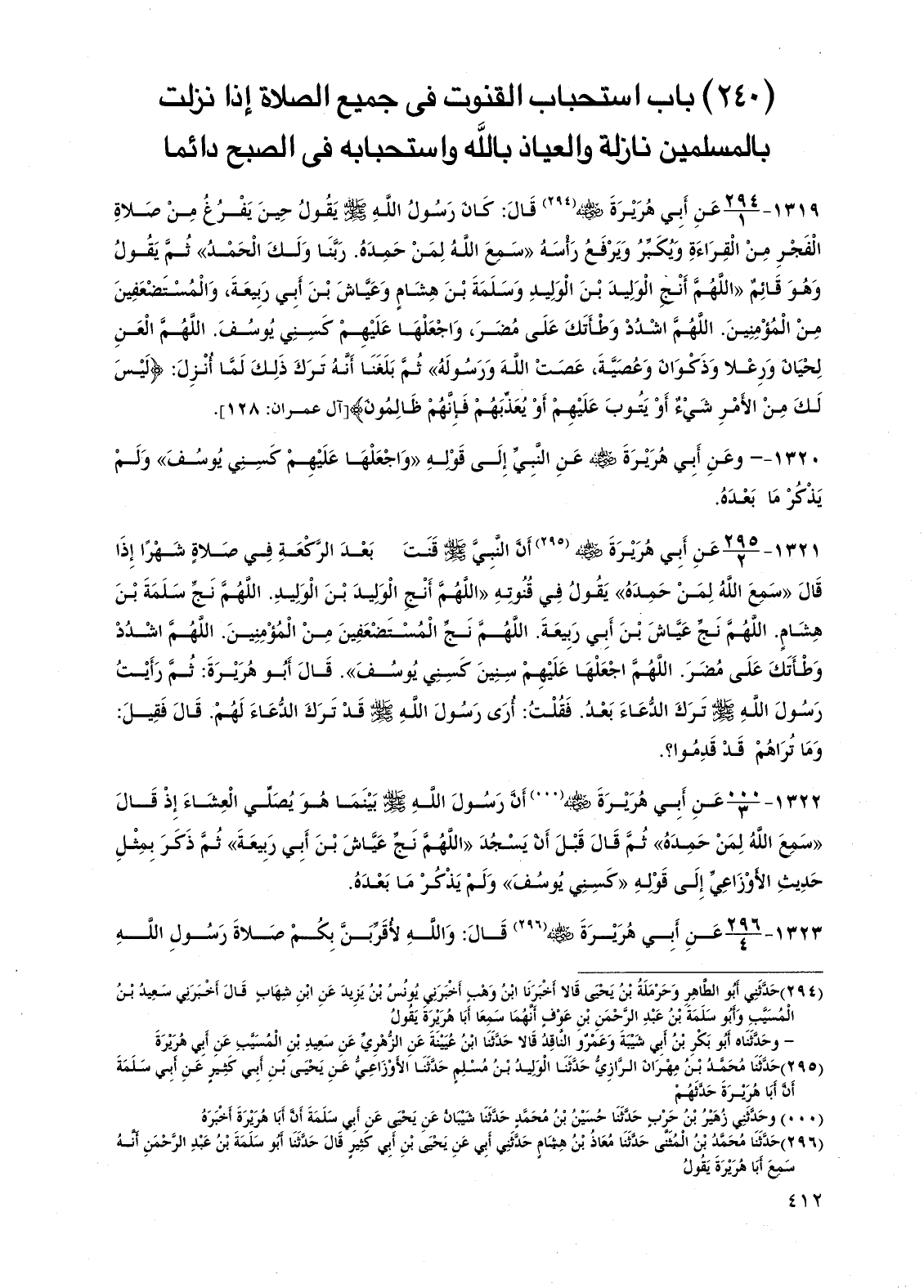 (240) باب استحباب القنوت في جميع الصلاة إذا نزلت بالمسلمين نازلة والعياذ بالله واستحبابه في الصبح دائمًا