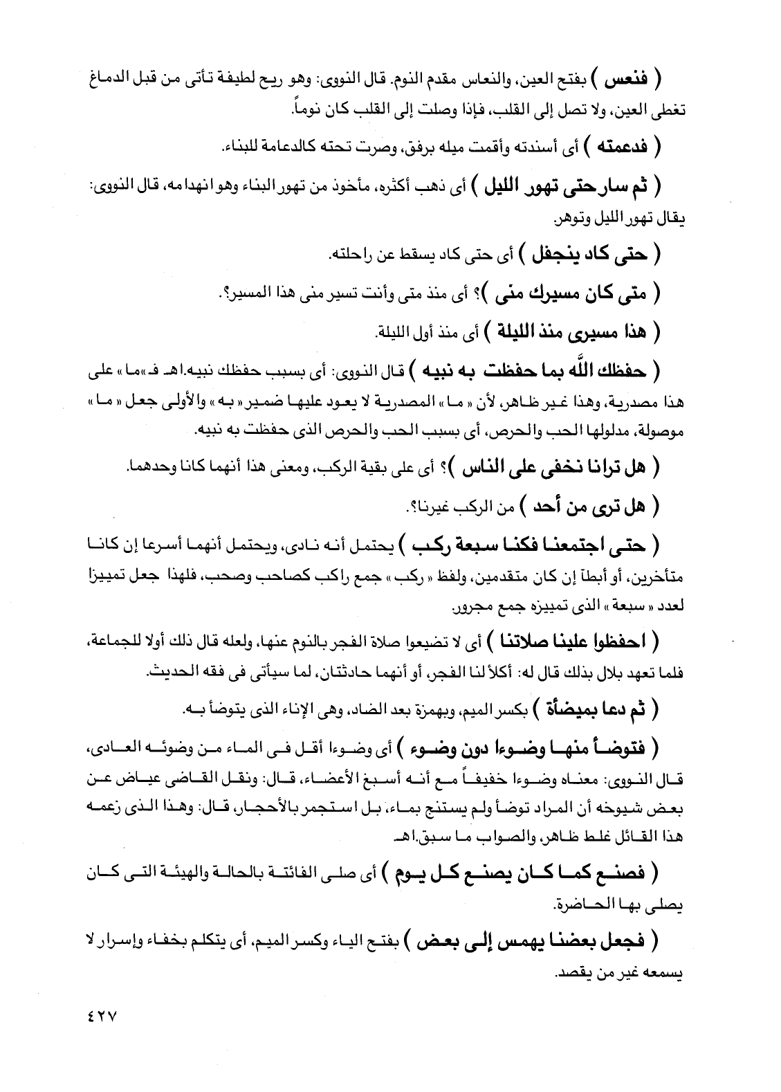 (فنعس) بفتح العين، والنعاس مقدم النوم. قال النووي: وهو ريح لطيفة تأتي من قبل الدماغ تغطي العين، ولا تصل إلى القلب، فإذا وصلت إلى القلب كان نومًا.