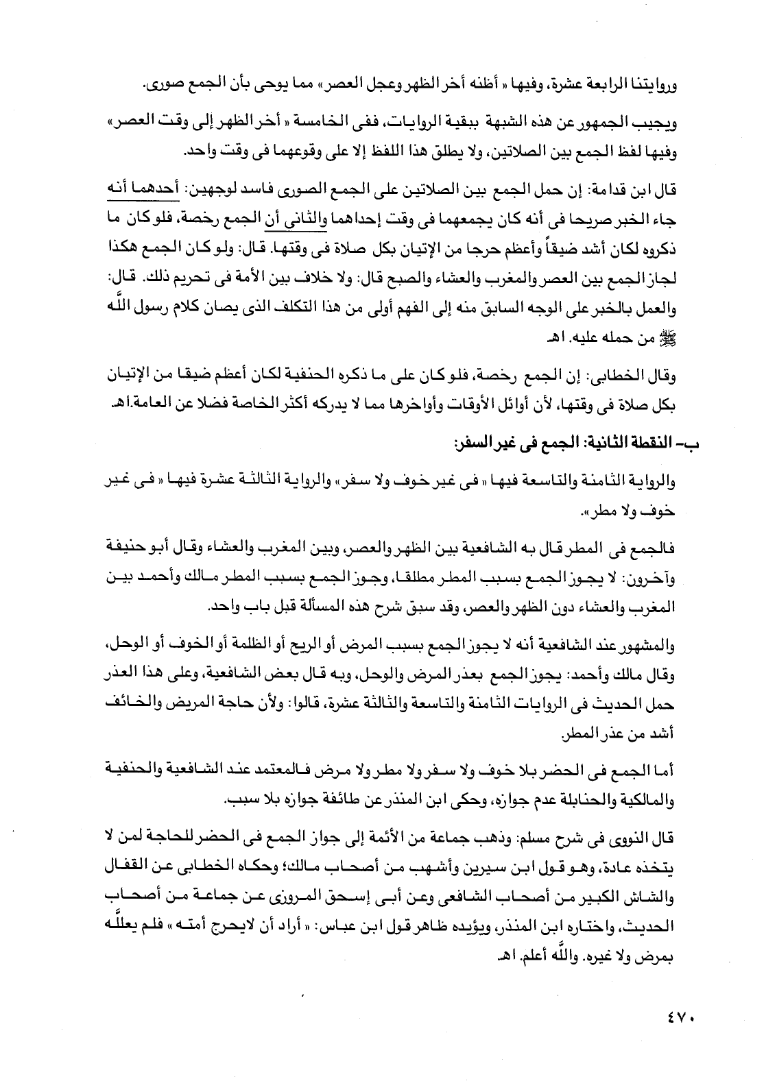 ب- النقطة الثانية: الجمع في غير السفر:
