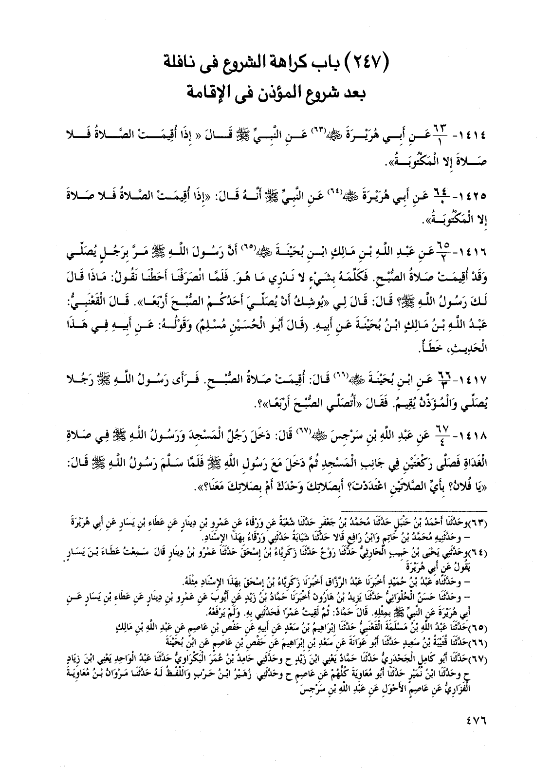 1417 - عن ابن بحينة رضي الله عنه قال: أقيمت صلاة الصبح. فرأى رسول الله صلى الله عليه وسلم رجلاً يصلي والمؤذن يقيم. فقال "أتصلي الصبح أربعًا"؟ .