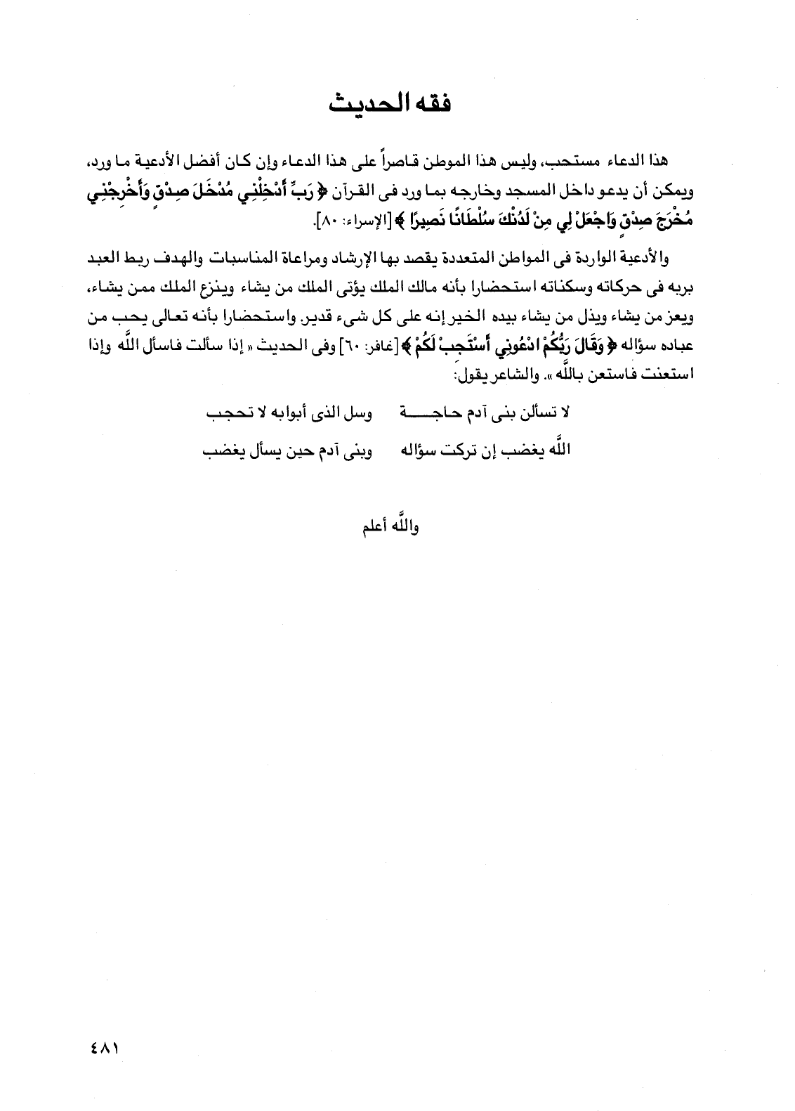 لا تسألن بني آدم حاجة ... وسل الذي أبوابه لا تحجب
