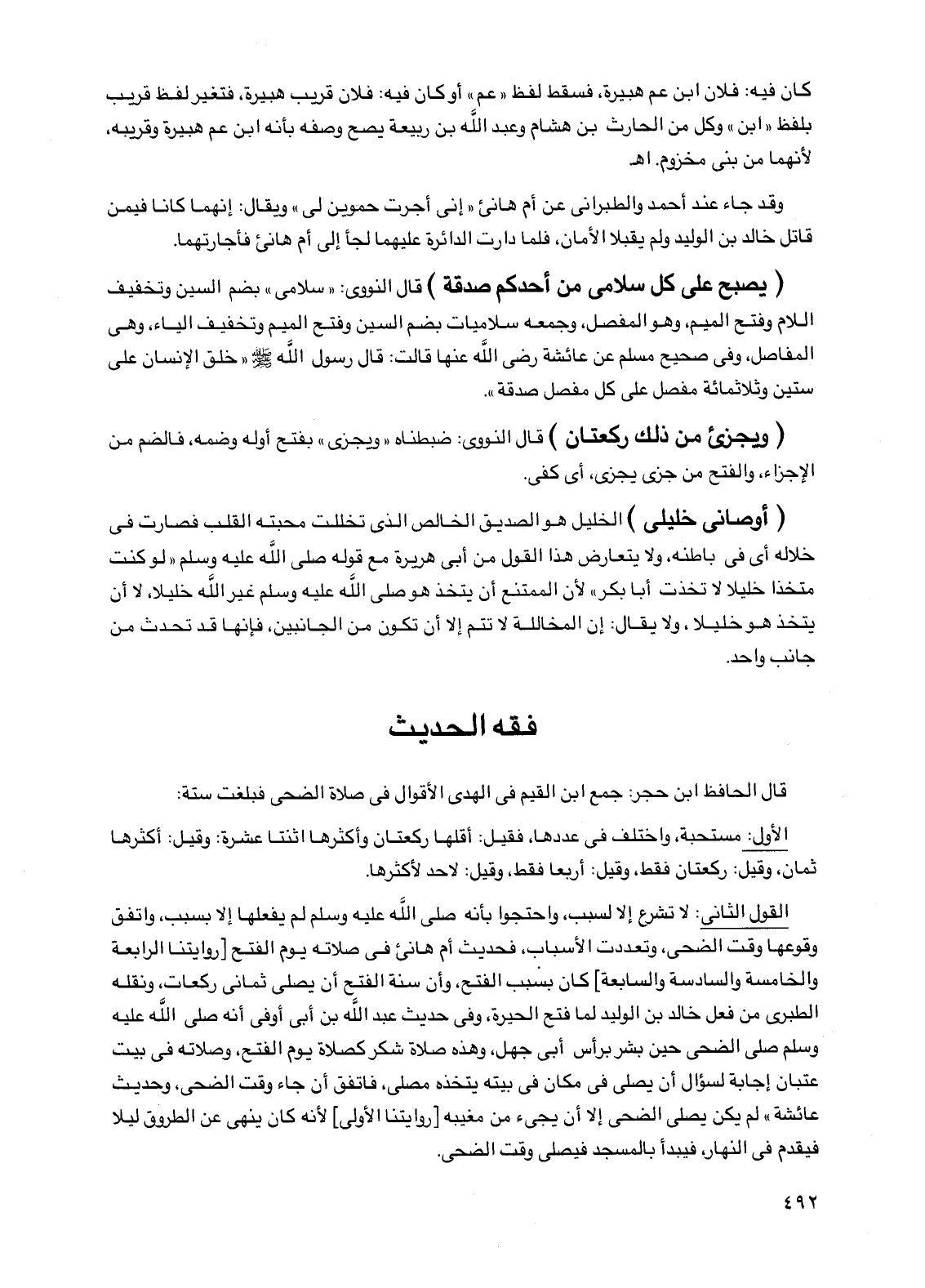 قال الحافظ ابن حجر: جمع ابن القيم في الهدى الأقوال في صلاة الضحى فبلغت ستة: