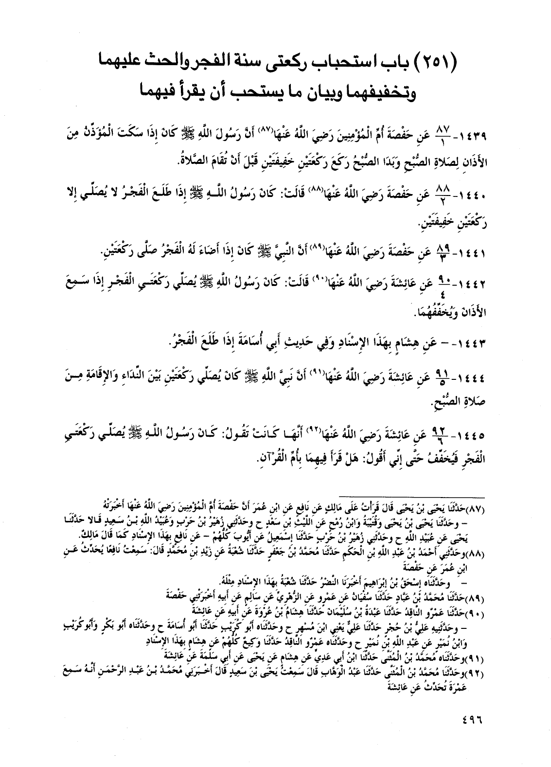 1441 - عن حفصة رضي الله عنها أن النبي صلى الله عليه وسلم كان إذا أضاء له الفجر صلى ركعتين.