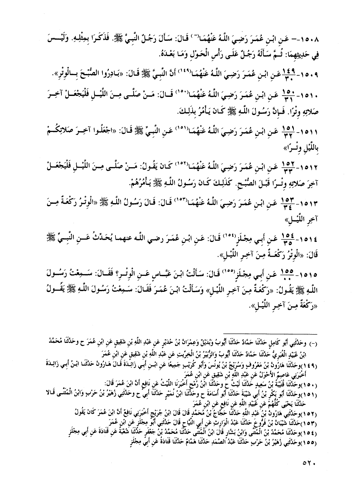 1509 - عن ابن عمر رضي الله عنهما أن النبي صلى الله عليه وسلم قال: "بادروا الصبح بالوتر".