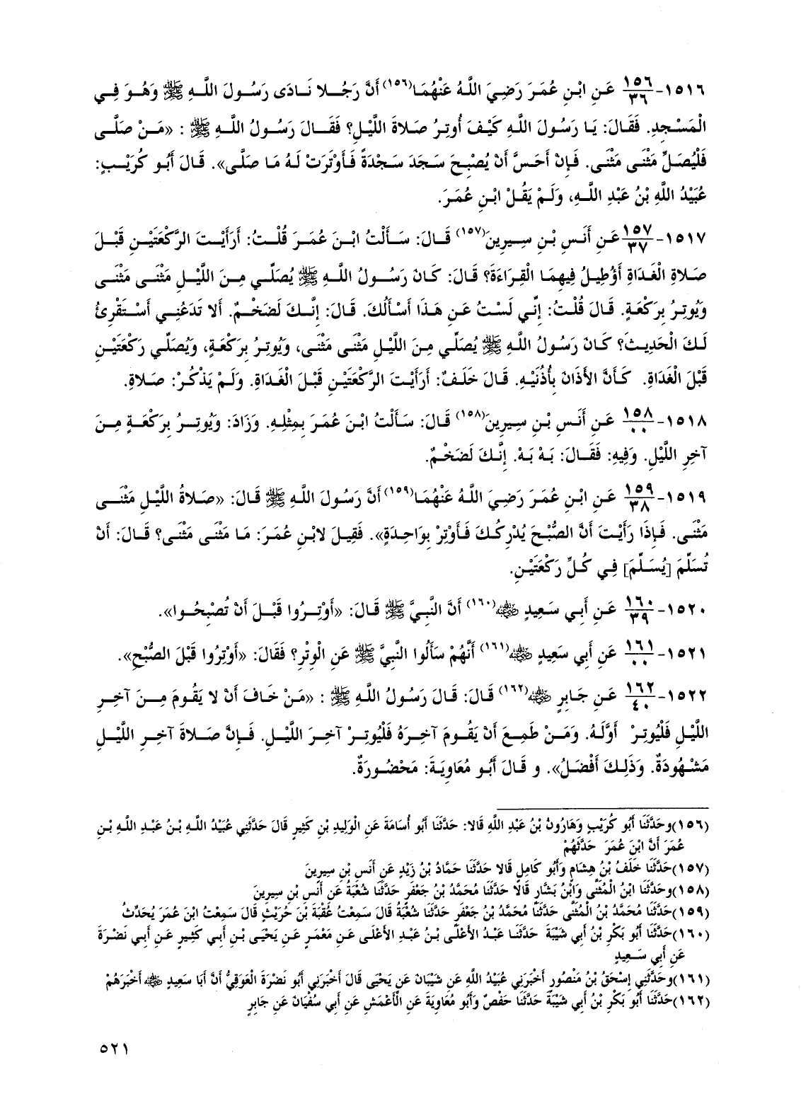 1521 - عن أبي سعيد رضي الله عنه أنهم سألوا النبي صلى الله عليه وسلم عن الوتر؟ فقال: "أوتروا قبل الصبح".
