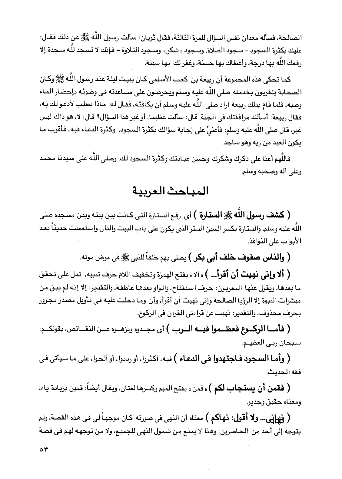 كما تحكي هذه المجموعة أن ربيعة بن كعب الأسلمي كان يبيت ليلة عند رسول الله صلى الله عليه وسلم وكان الصحابة يتقربون بخدمته صلى الله عليه وسلم ويحرصون على مساعدته في وضوئه بإحضار الماء وصبه، فلما قام بذلك ربيعة أراد صلى الله عليه وسلم أن يكافئه، فقال له: ماذا تطلب لأدعو لك به، فقال ربيعة: أسألك مرافقتك في الجنة. قال: سألت عظيما، أو غير هذا السؤال؟ قال: لا، هو ذاك ليس غير، قال صلى الله عليه وسلم: فأعني على إجابة سؤالك بكثرة السجود، وكثرة الدعاء فيه. فأقرب ما يكون العبد من ربه وهو ساجد.