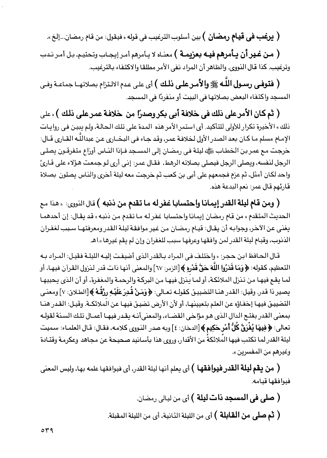 (ومن قام ليلة القدر إيمانًا واحتسابًا غفر له ما تقدم من ذنبه) قال النووي: "هذا مع الحديث المتقدم "من قام رمضان إيمانًا واحتسابًا غفر له ما تقدم من ذنبه" قد يقال: إن أحدهما يغني عن الآخر، وجوابه أن يقال: قيام رمضان من غير موافقة ليلة القدر ومعرفتها سبب لغفران الذنوب، وقيام ليلة القدر لمن وافقها وعرفها سبب للغفران وإن لم يقم غيرها". اهـ.