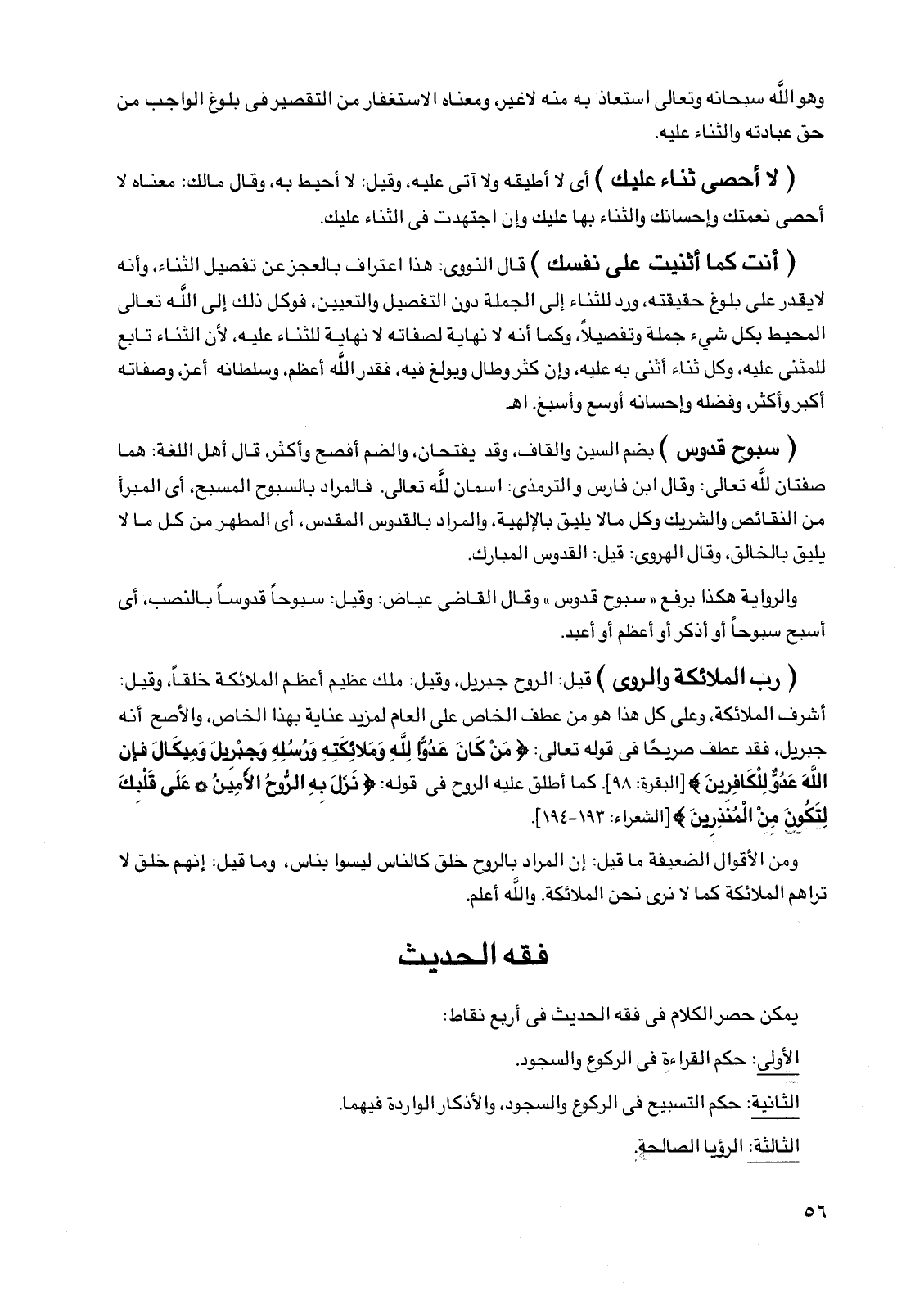(أنت كما أثنيت على نفسك) قال النووي: هذا اعتراف بالعجز عن تفصيل الثناء، وأنه لا يقدر على بلوغ حقيقته، ورد للثناء إلى الجملة دون التفصيل والتعيين، فوكل ذلك إلى الله تعالى المحيط بكل شيء جملة وتفصيلاً، وكما أنه لا نهاية لصفاته لا نهاية للثناء عليه، لأن الثناء تابع للمثنى عليه، وكل ثناء أثنى به عليه، وإن كثر وطال وبولغ فيه، فقدر الله أعظم، وسلطانه أعز، وصفاته أكبر وأكثر، وفضله وإحسانه أوسع وأسبغ. اهـ