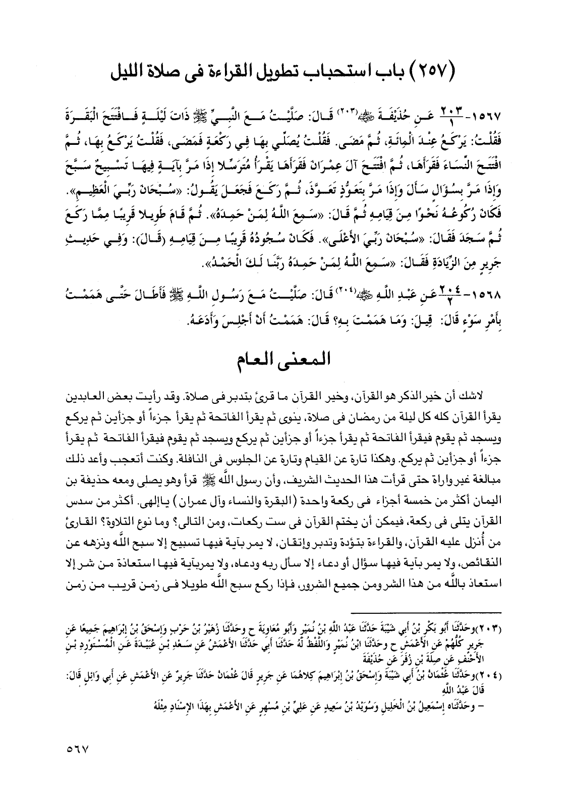 (257) باب استحباب تطويل القراءة في صلاة الليل