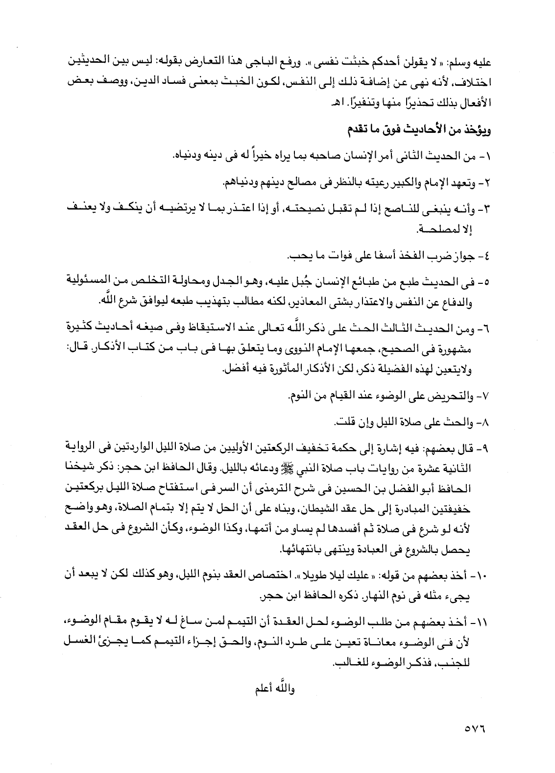 10 - أخذ بعضهم من قوله: "عليك ليلاً طويلاً". اختصاص العقد بنوم الليل، وهو كذلك لكن لا يبعد أن يجيء مثله في نوم النهار. ذكره الحافظ ابن حجر.