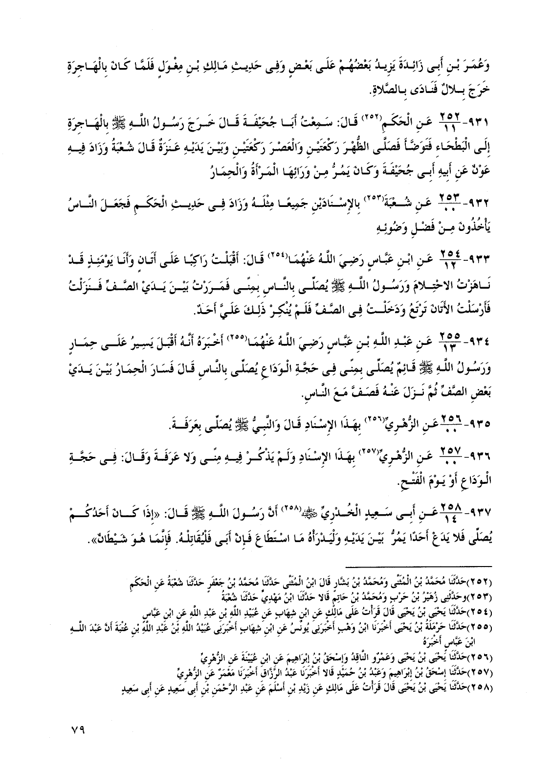 937 - عن أبي سعيد الخدري رضي الله عنه أن رسول الله صلى الله عليه وسلم قال: "إذا كان أحدكم يصلي فلا يدع أحدًا يمر بين يديه وليدرأه ما استطاع فإن أبى فليقاتله. فإنما هو شيطان".