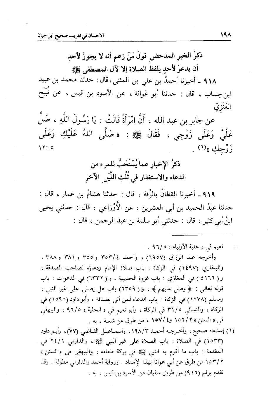 918 - أَخْبَرَنَا أَحْمَدُ بْنُ عَلِيِّ بْنِ الْمُثَنَّى، قَالَ: حَدَّثَنَا مُحَمَّدُ بْنُ عُبَيْدِ بْنِ حِسَابٍ، قَالَ: حَدَّثَنَا أَبُو عَوَانَةَ، عَنِ الْأَسْوَدِ بْنِ قَيْسٍ، عَنْ نُبَيْحٍ الْعَنَزِيِّ، عَنْ جَابِرِ بْنِ عَبْدِ اللَّهِ، أَنَّ امْرَأَةً قَالَتْ: يَا رَسُولَ اللَّهِ، صَلِّ عَلَيَّ وَعَلَى زَوْجِي، فَقَالَ صَلَّى اللَّهُ عَلَيْهِ وَسَلَّمَ: «صَلَّى اللَّهُ عَلَيْكِ وَعَلَى زَوْجِكِ» (¬1) . [5: 12]