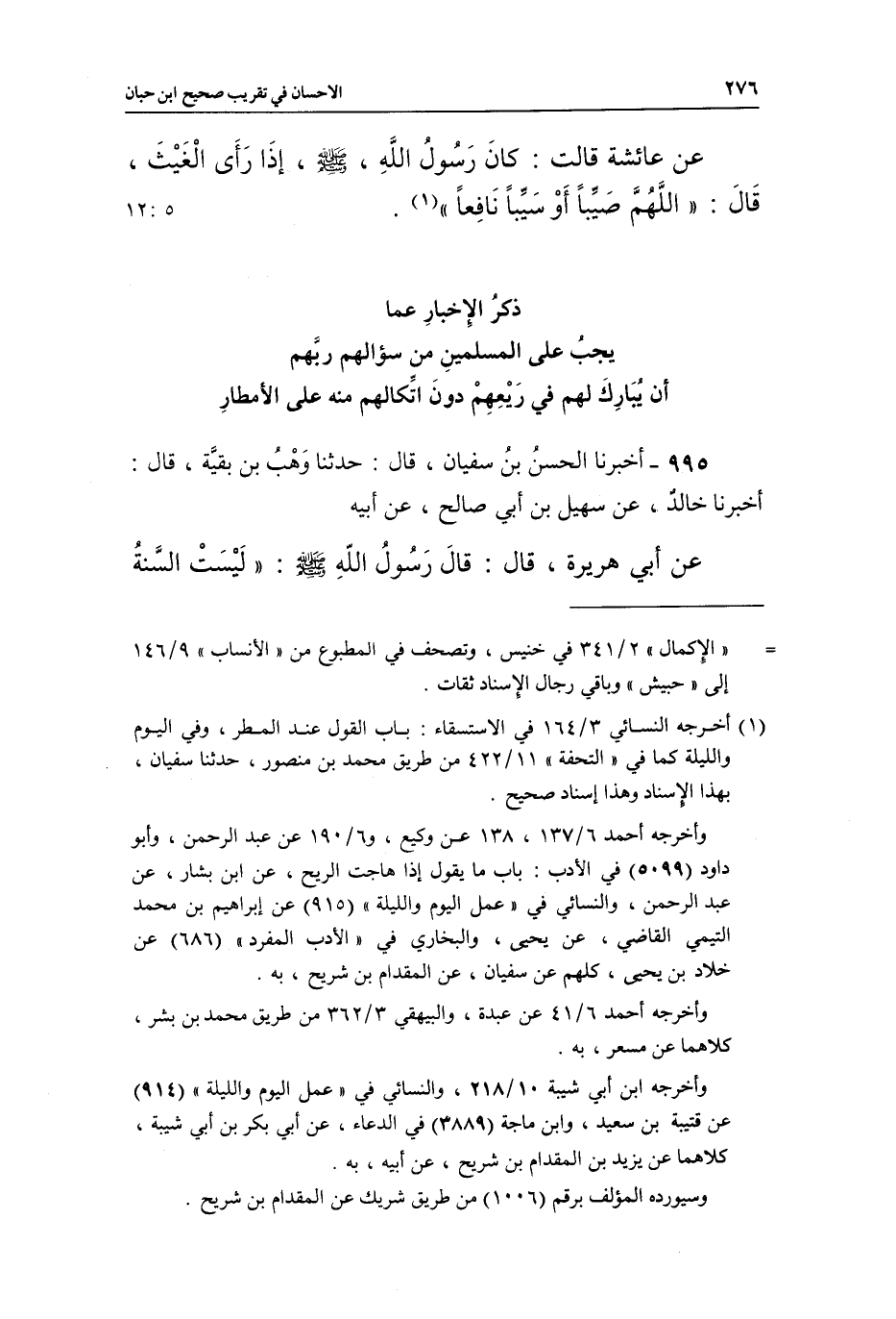 (¬1) أخرجه النسائي 3/164 فىِ الاستسقاء: باب القول عند المطر، وفى اليوم والليلة كما في " التحفة " 11/422 من طريق محمد بن منصور، حدثنا سفيان، بهذا الإسناد وهذا إسناد صحيح.