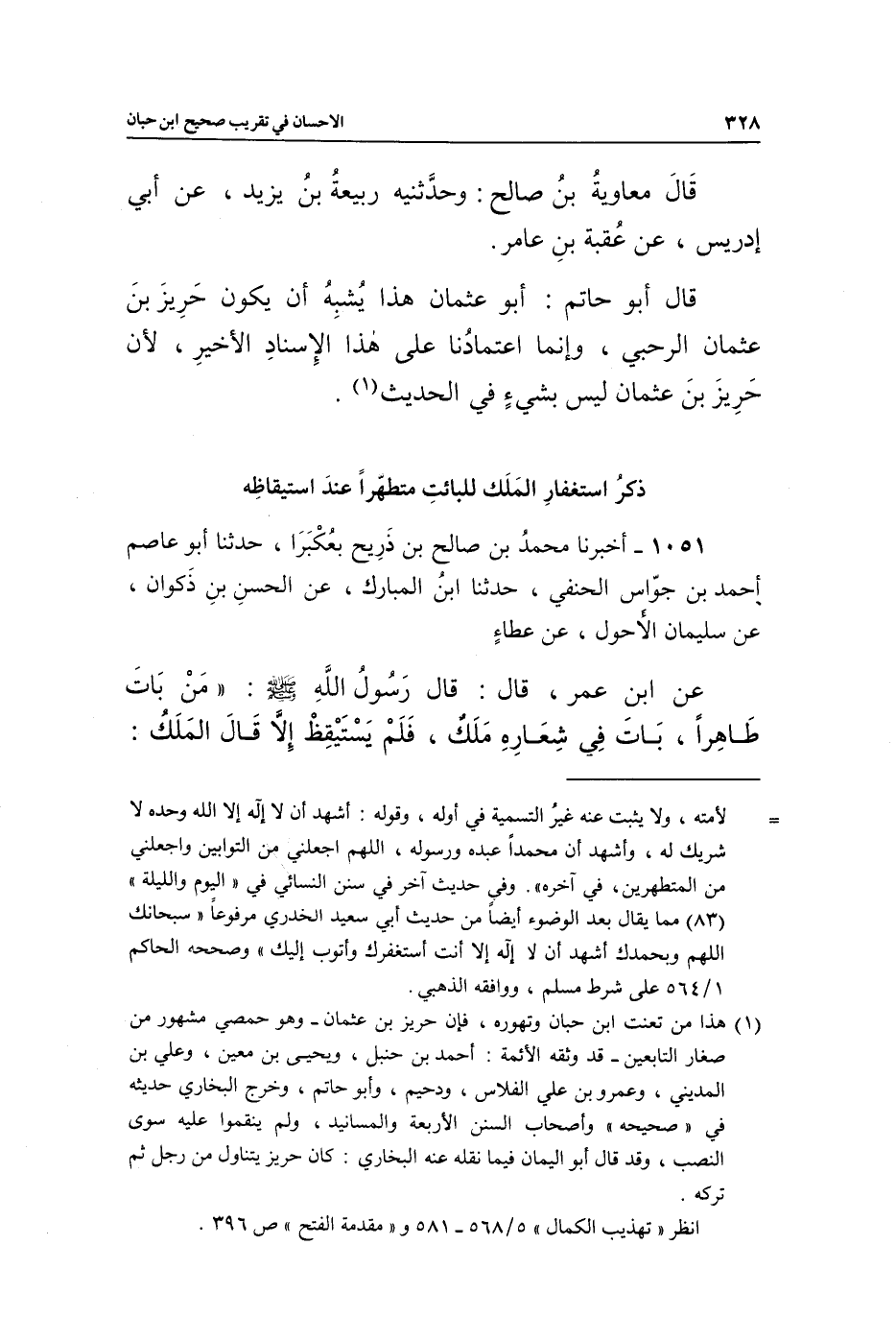 1 هذا من تعنت ابن حبان وتهوره، فإن حريز بن عثمان- وهو حمصي مشهور من صغار التابعين- قد وثقه الأئمة: أحمد بن حنبل، ويحيى بن معين، وعلي بن المديني، وعمرو بن علي الفلاس، ودحيم، وأبو حاتم، وخرج البخاري حديثه في "صحيحه" وأصحاب السنن الأربعة والمسانيد، ولم ينقموا عليه سوى النصب، وقد قال أبو اليمان فيما نقله عنه البخاري: كان حريز يتناول من رجل ثم تركه.