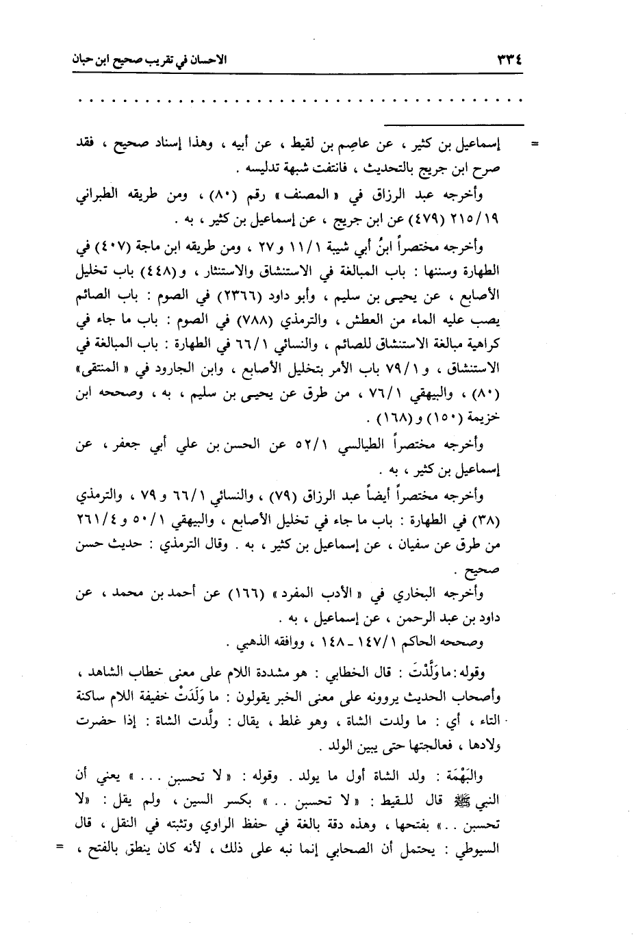 = أخبرني إِسْمَاعِيلَ بْنِ كَثِيرٍ، عَنْ عَاصِمِ بْنِ لَقِيطِ، عن أبيه، وهذا إسناد صحيح، فقد صرح ابن جريج بالتحديث، فانتفت شبهة تدليسه.
