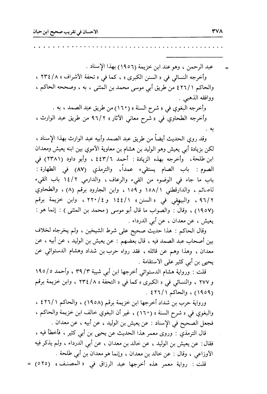 وقال الحاكم: هذا حديث صحيح على شرط الشيخين، ولمَ يخرجاه لخلاف بين أصحاب عبد الصمد فيه، قال بعضهم: عن يعيش بن الوليد، عن أبيه، عن معدان، وهذا وهم من قائله، فقد رواه حرب بن شداد وهشام الدستوائي عن يحيى بن أبي كثير على الاستقامة.