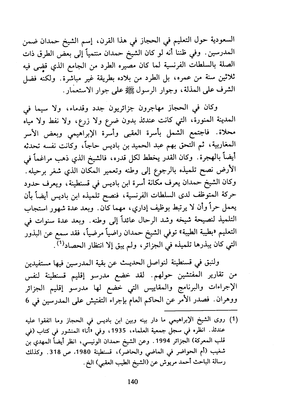 (¬1) روى الشيخ الإبراهيمي ما دار بينه وبين ابن باديس في الحجاز وما اتفقوا عليه عندئذ. انظره في سجل جمعية العلماء، 1935، وفي (أنا) المنشور في كتاب (في قلب المعركة) الجزائر 1994. وعن الشيخ حمدان الونيسي، انظر أيضا المهدي بن شغيب (أم الحواضر في الماضي والحاضر)، قسنطينة 1980، ص 318. وكذلك رسالة الباحث أحمد مريوش عن (الشيخ الطيب العقبي) الخ.