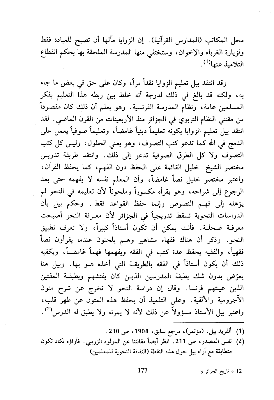 (¬2) نفس المصدر، ص 211. انظر أيضا مقالتنا عن المولود الزريبي. فآراؤه تكاد تكون متطابقة مع آراء بيل حول هذه النقطة (الثقافة النحوية للمعلمين).