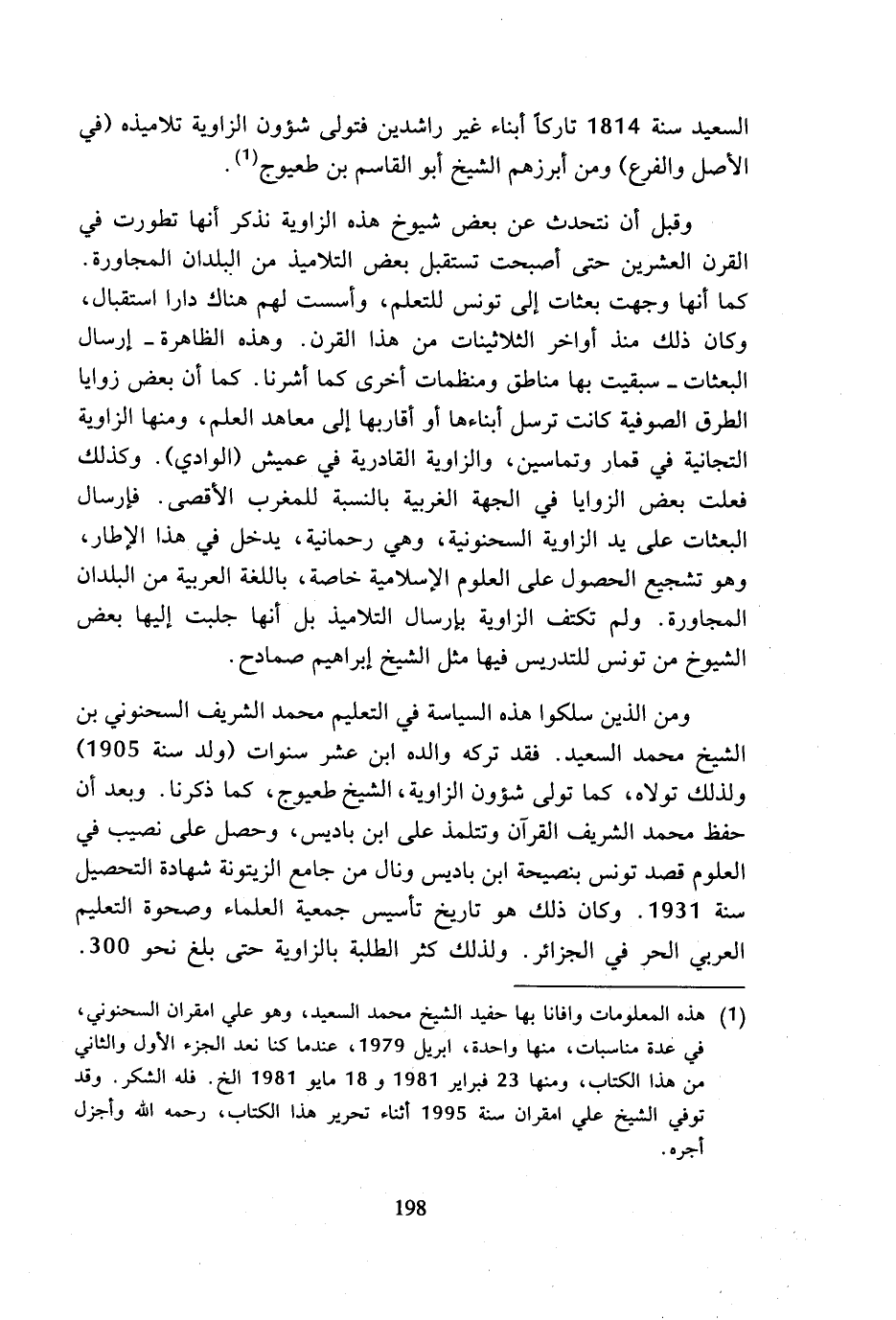 (¬1) هذه المعلومات وافانا بها حفيد الشيخ محمد السعيد، وهو علي امقران السحنوني، في عدة مناسبات، منها واحدة، ابريل 1979، عندما كنا نعد الجزء الأول والثاني من هذا الكتاب، ومنها 23 فبراير 1981 و 18 مايو 1981 الخ. فله الشكر. وقد توفي الشيخ علي امقران سنة 1995 أثناء تحرير هذا الكتاب، رحمه الله وأجزل أجره.