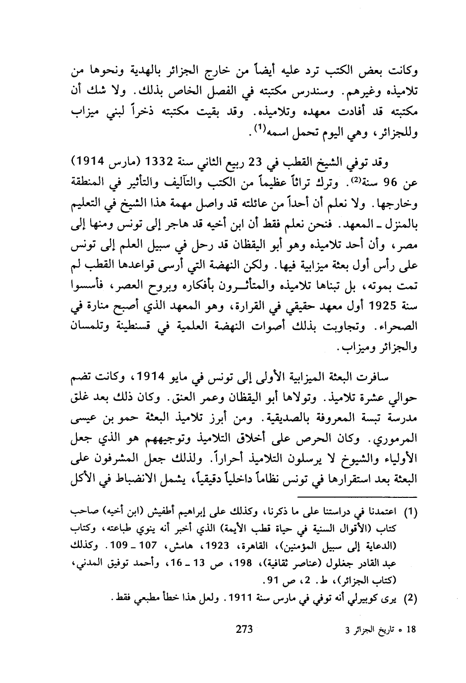 (¬1) اعتمدنا في دراستنا على ما ذكرنا، وكذلك على إبراهيم أطفيش (ابن أخيه) صاحب كتاب (الأقوال السنية في حياة قطب الأيمة) الذي أخبر أنه ينوي طباعته، وكتاب (الدعاية إلى سبيل المؤمنين)، القاهرة، 1923، هامش، 107 - 159. وكذلك عبد القادر جغلول (عناصر ثقافية) 198، ص 13 - 16، وأحمد توفيق المدني، (كتاب الجزائر)، ط. 2، ص 91.