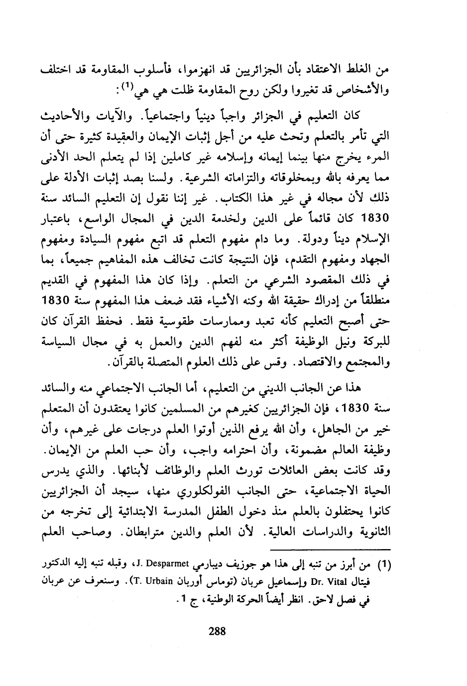 (¬1) من أبرز من تنبه إلى هذا هو جوزيف ديبارمي J.Desparmet، وقبله تنبه إليه الدكتور فيتال Dr.Vital وإسماعيل عربان (توماس أوربان T.Urbain). وسنعرف عن عربان في فصل لاحق. انظر أيضا الحركة الوطنية، ج 1.