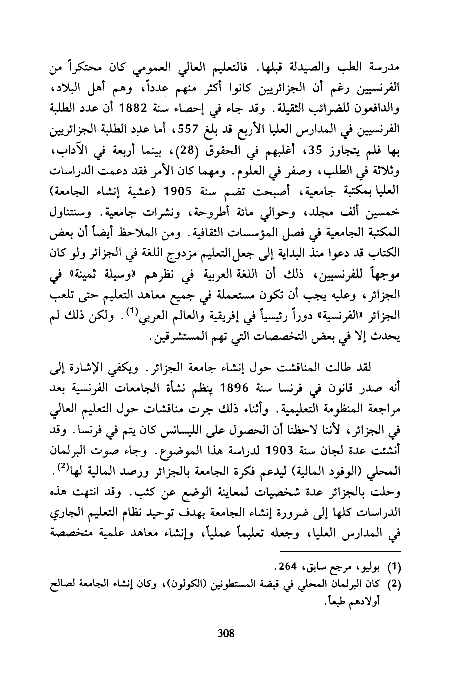 (¬2) كان البرلمان المحلي في قبضة المستطونين (الكولون)، وكان إنشاء الجامعة لصالح أولادهم طبعا.