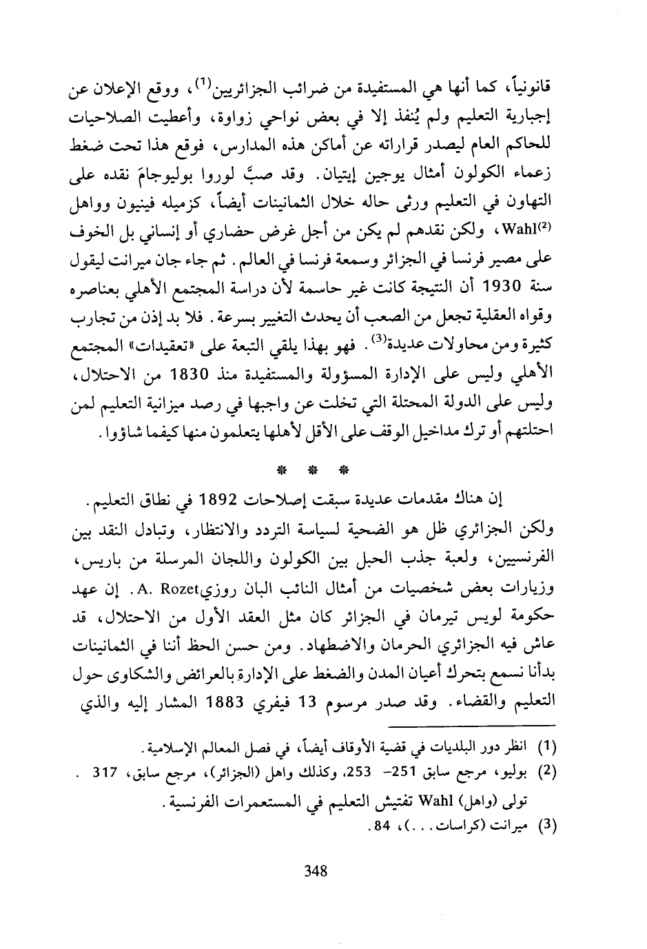 (¬2) بوليو، مرجع سابق 251 - 253 وكذلك واهل (الجزائر)، مرجع سابق، 317. تولى (واهل) Wahl تفتيش التعليم في المستعمرات الفرنسية.