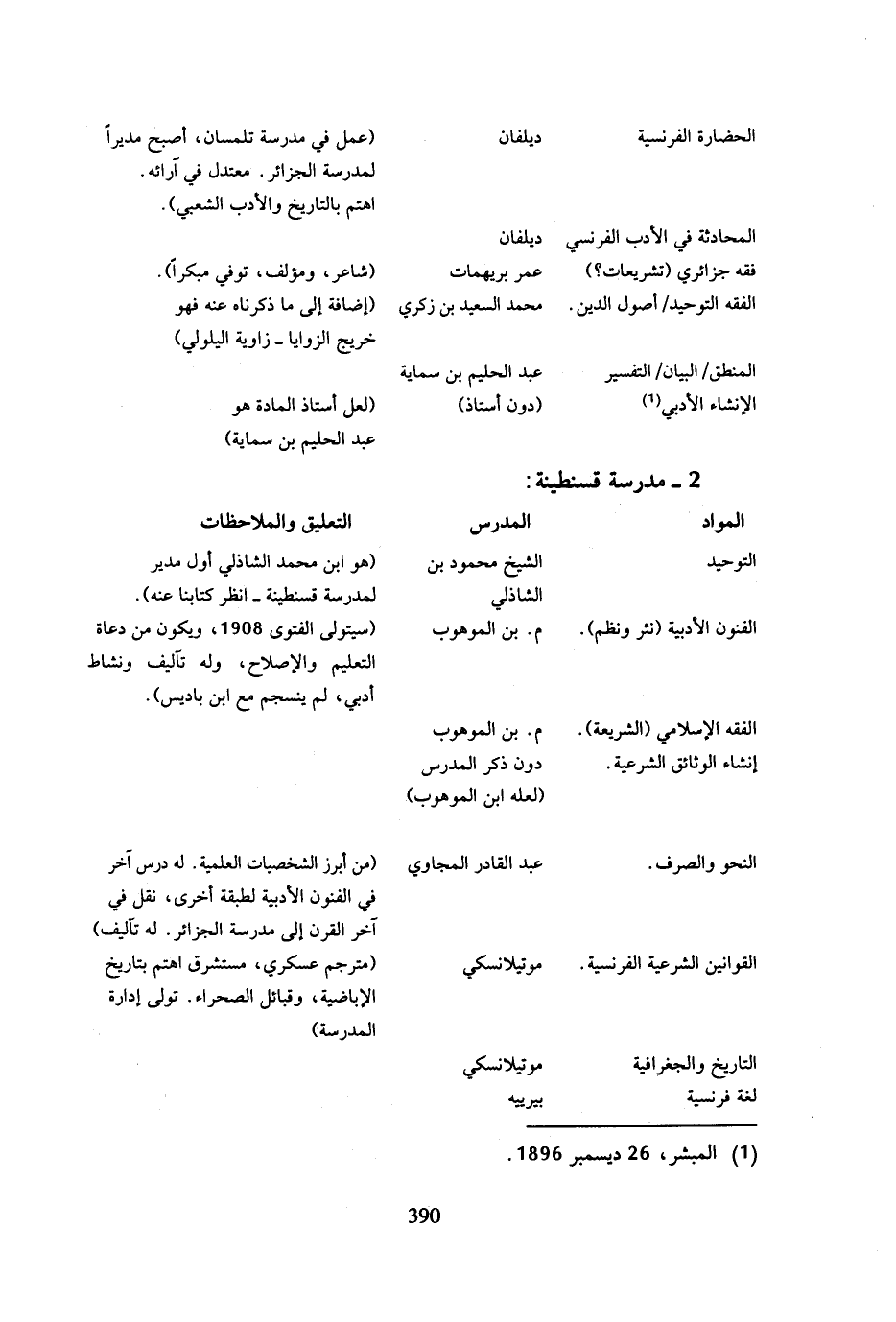 في الفنون الأدبية لطبقة أخرى، نقل في آخر القرن إلى مدرسة الجزائر. له تآليف)