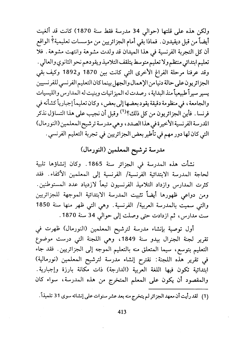 (¬1) لقد رأيت أن معهد الجزائر لم يتخرج منه بعد عشر سنوات على إنشائه سوى 31 تلميذا.