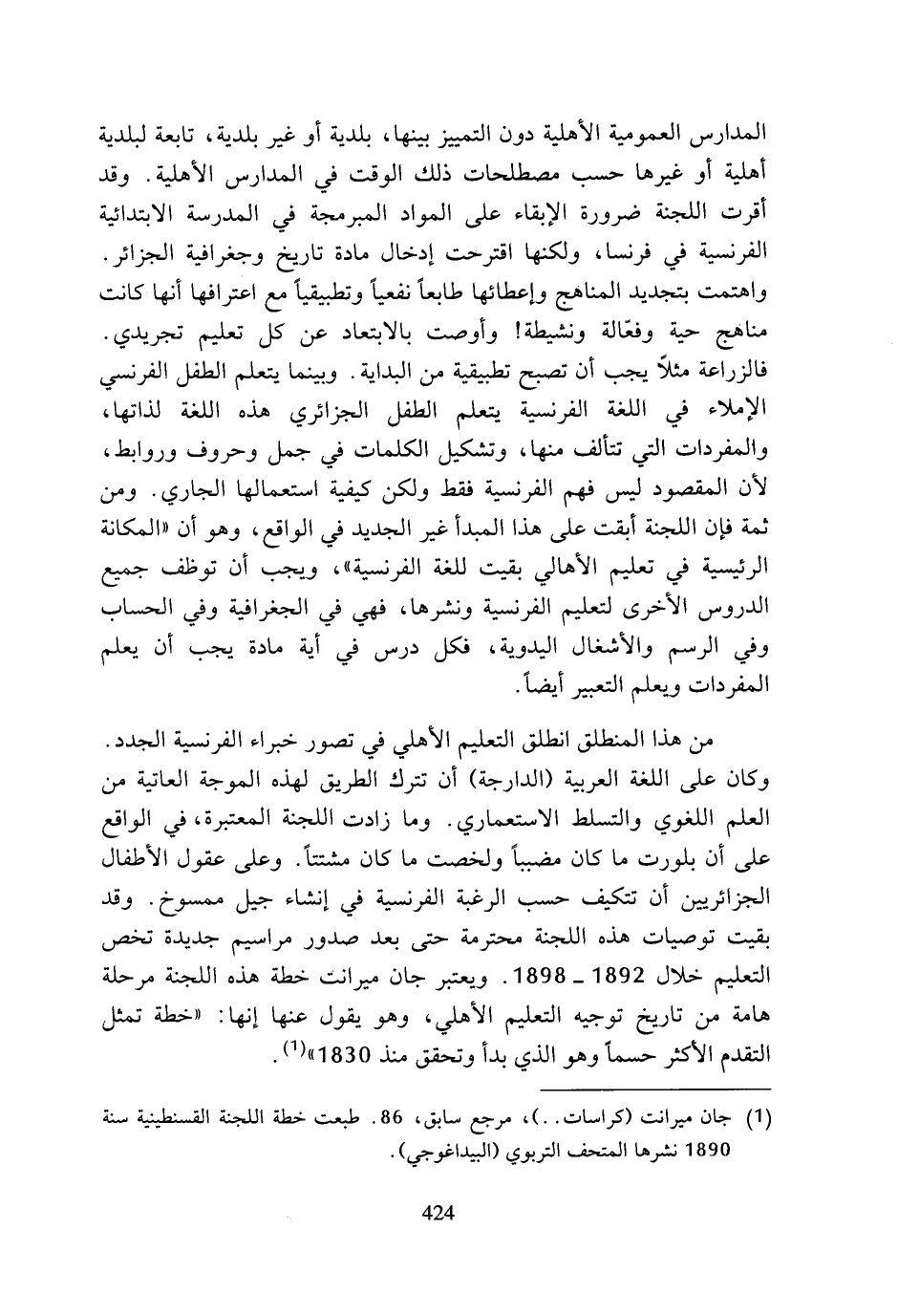 (¬1) جان ميرانت (كراسات ..)، مرجع سابق، 86. طبعت خطة اللجنة القسنطينية سنة 1890 نشرها المتحف التربوي (البيداغوجي).