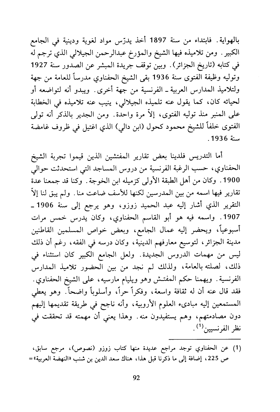 (¬1) عن الحفناوي توجد مراجع عديدة منها كتاب زوزو (نصوص)، مرجع سابق، ص 225، إضافة إلى ما ذكرنا قبل هذا، هناك سعد الدين بن شنب (النهضة العربية) =