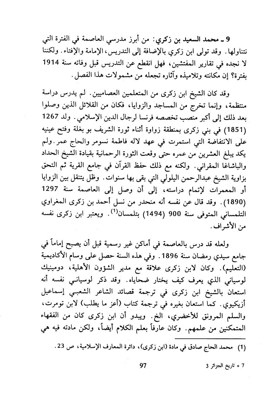 (¬1) محمد الحاج صادق في مادة (ابن زكري)، دائرة المعارف الإسلامية، ص 23.