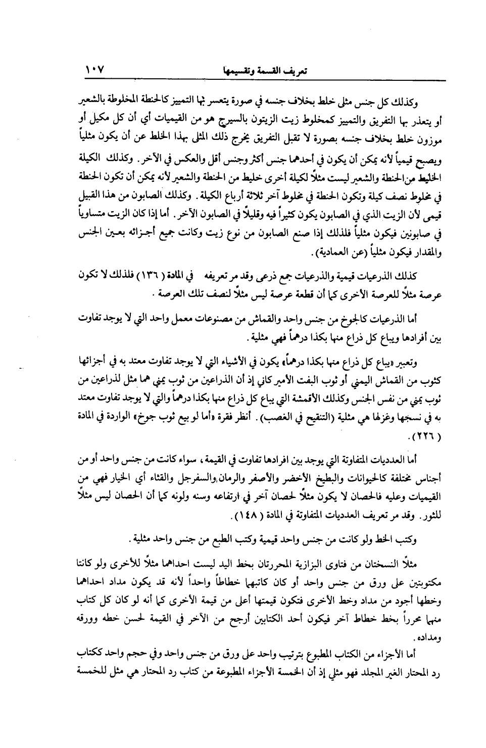 وَكُتُبُ الْخَطِّ وَلَوْ كَانَتْ مِنْ جِنْسٍ وَاحِدٍ قِيَمِيَّةٌ وَكُتُبُ الطَّبْعِ مِنْ جِنْسٍ وَاحِدٍ مِثْلِيَّةٌ.