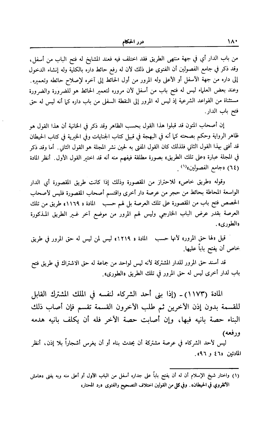 قِيلَ (لَهَا حَقُّ الْمُرُورِ) لِأَنَّهَا حَسْبَ الْمَادَّةِ (1219) لَيْسَ لِمَنْ لَيْسَ لَهُ حَقُّ الْمُرُورِ فِي طَرِيقٍ خَاصِّيٍّ أَنْ يَفْتَحَ بَابًا عَلَيْهَا.