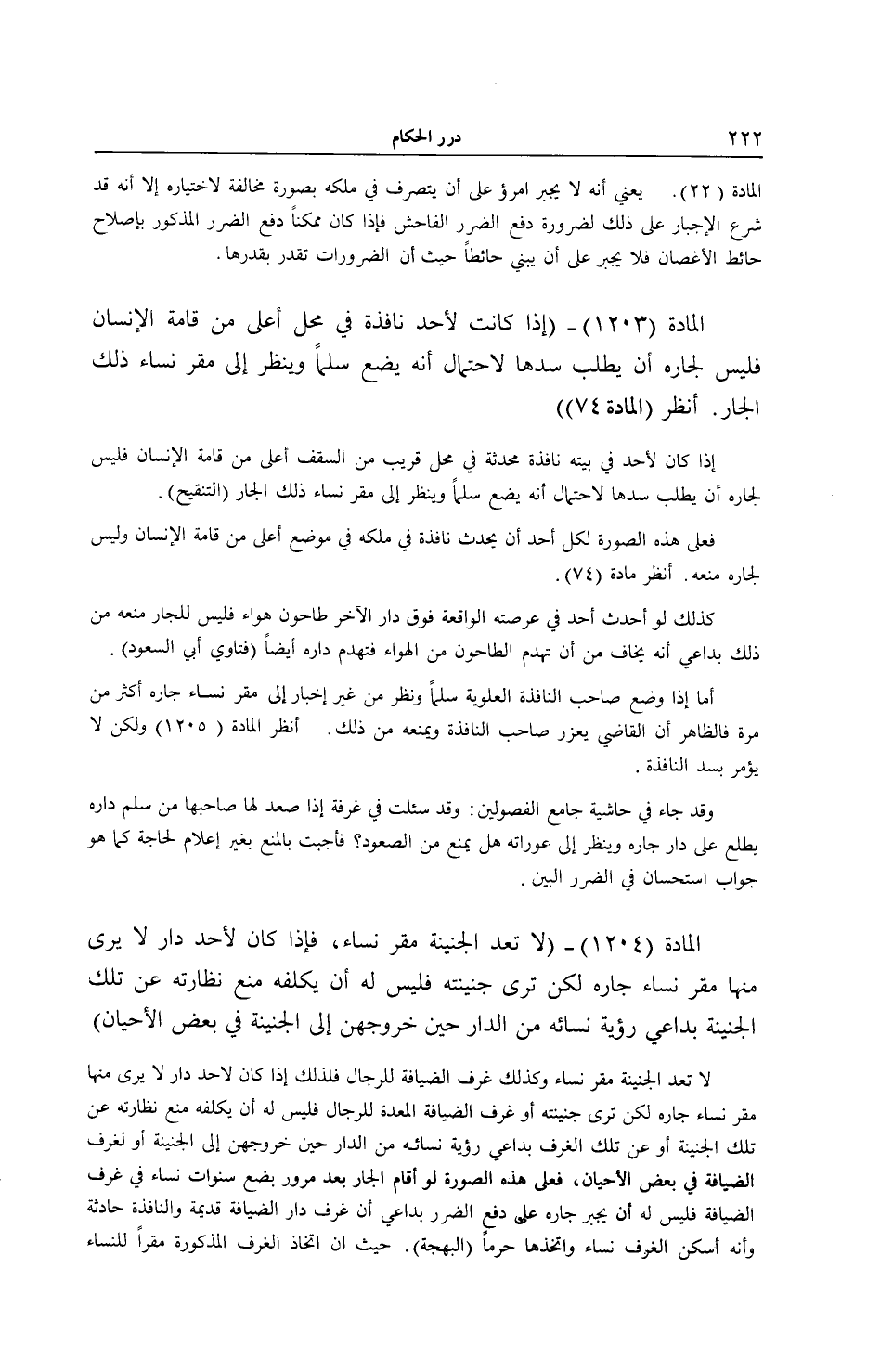[ (الْمَادَّةُ 1203) إذَا كَانَتْ لِأَحَدِ نَافِذَة فِي مَحِلّ أَعَلَى مِنْ قَامَة الْإِنْسَان فَلَيْسَ لِجَارِهِ أَنْ يطلب سَدّهَا]