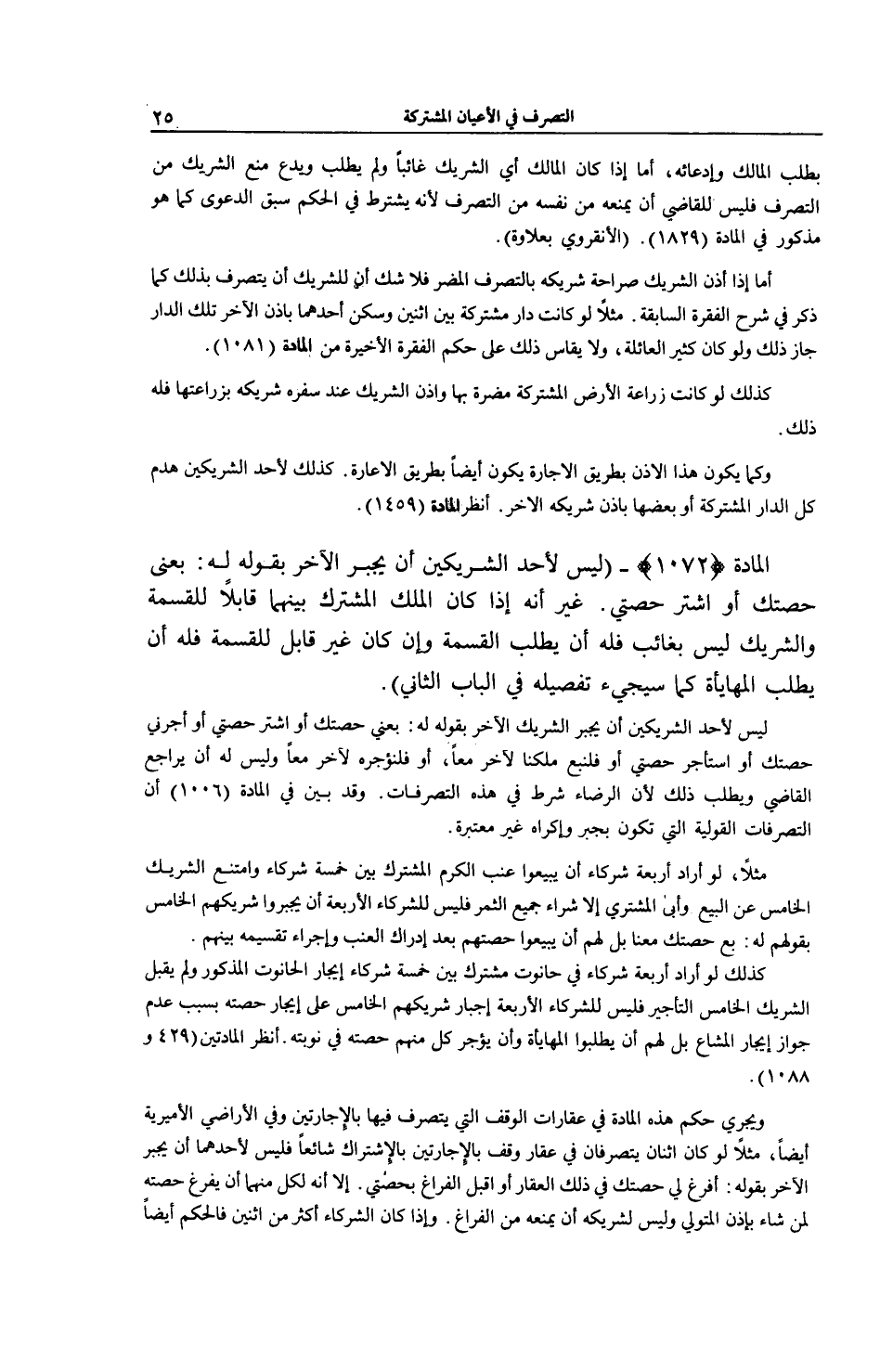 [ (الْمَادَّةُ 1072) لَيْسَ لِأَحَدِ الشَّرِيكَيْنِ أَنْ يُجْبِرَ الْآخَرَ]