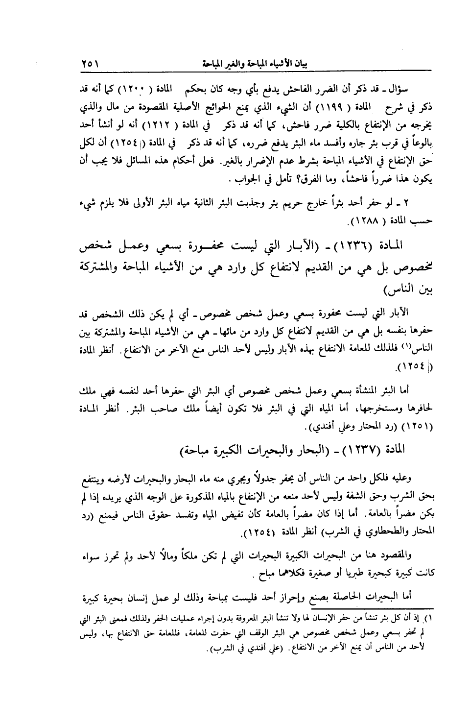 [ (الْمَادَّةُ 1236) الْآبَارُ الَّتِي لَيْسَتْ مَحْفُورَةً مِنْ الْأَشْيَاءِ الْمُبَاحَةِ وَالْمُشْتَرَكَةِ بَيْنَ النَّاسِ]