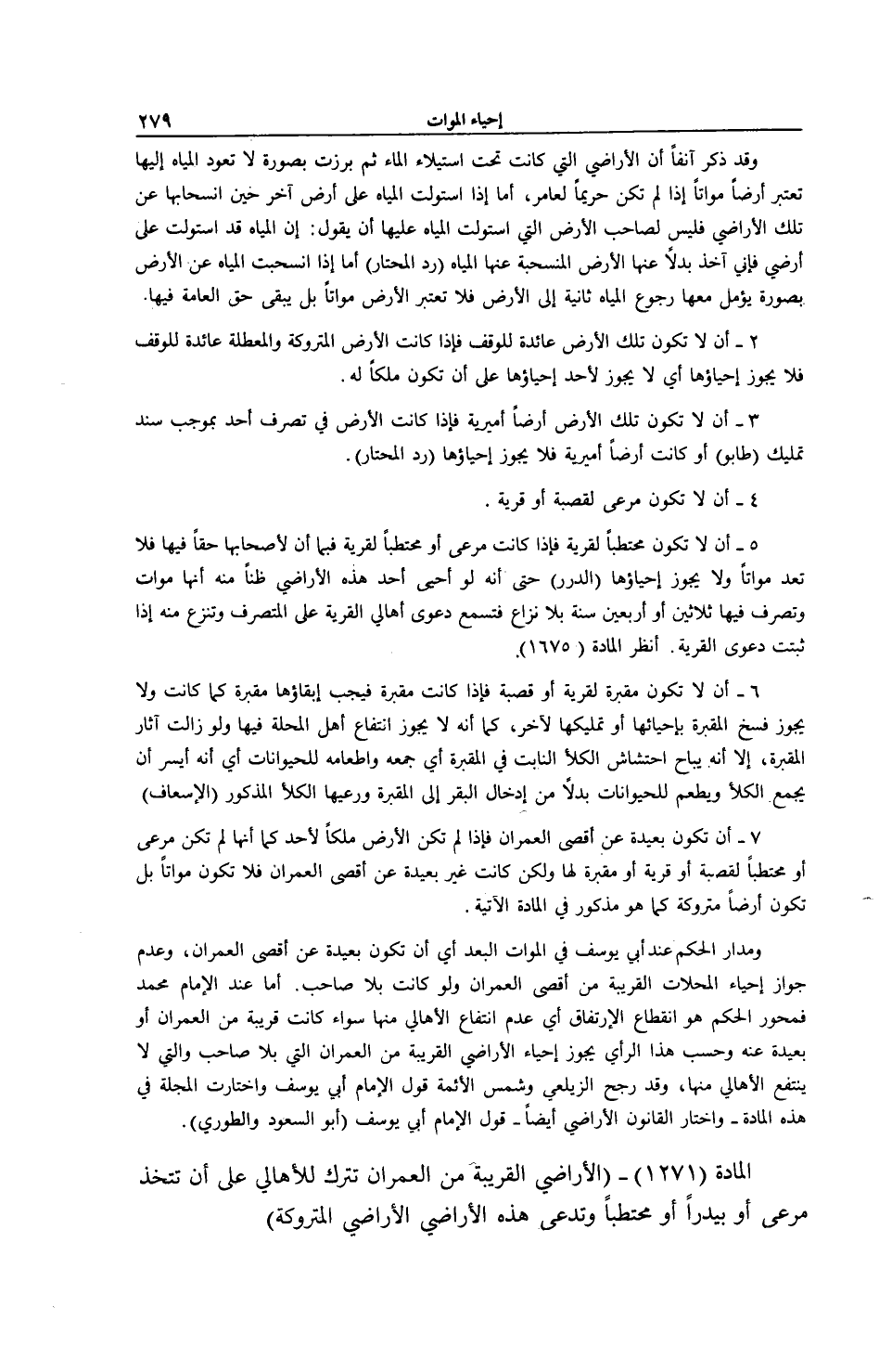 [ (الْمَادَّةُ 1271) الْأَرَاضِي الْقَرِيبَةُ مِنْ الْعُمْرَانِ تُتْرَكُ لِلْأَهَالِيِ]