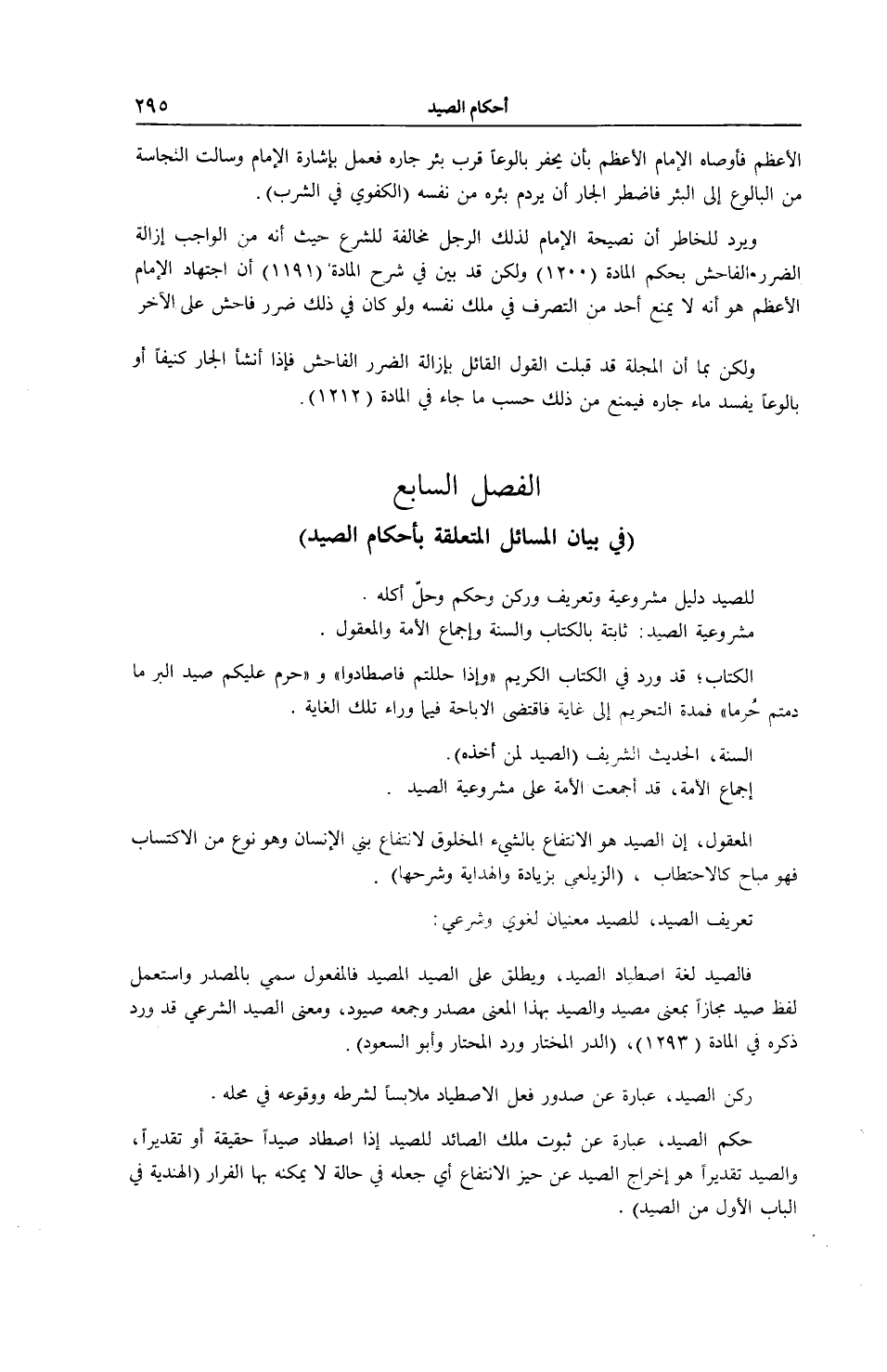 [الْفَصْلُ السَّابِعُ فِي بَيَانِ الْمَسَائِلِ الَّتِي تَتَعَلَّقُ بِأَحْكَامِ الصَّيْدِ]