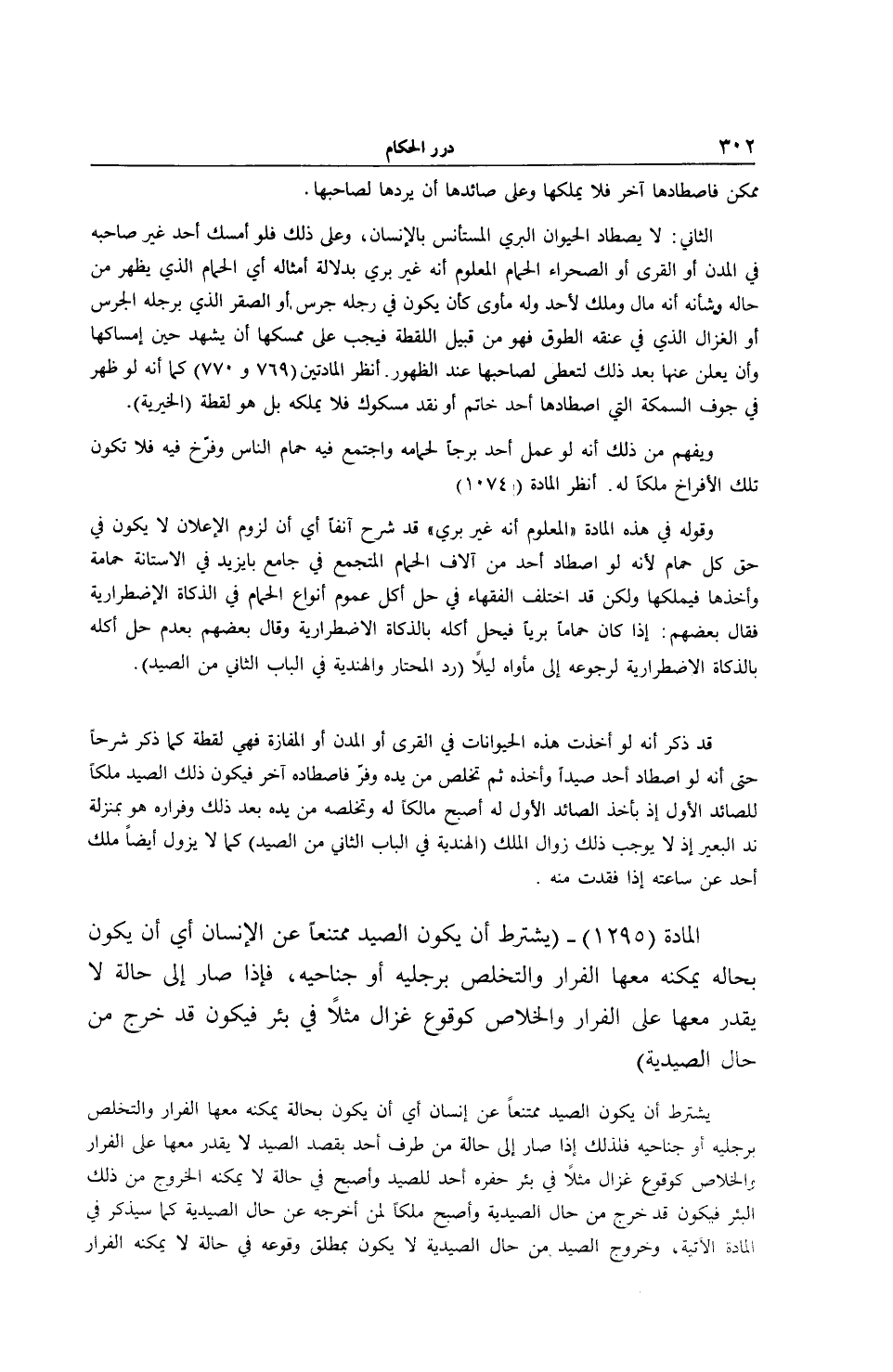[ (الْمَادَّةُ 1295) يُشْتَرَطُ أَنْ يَكُونَ الصَّيْدُ مُمْتَنِعًا عَنْ الْإِنْسَانِ]
