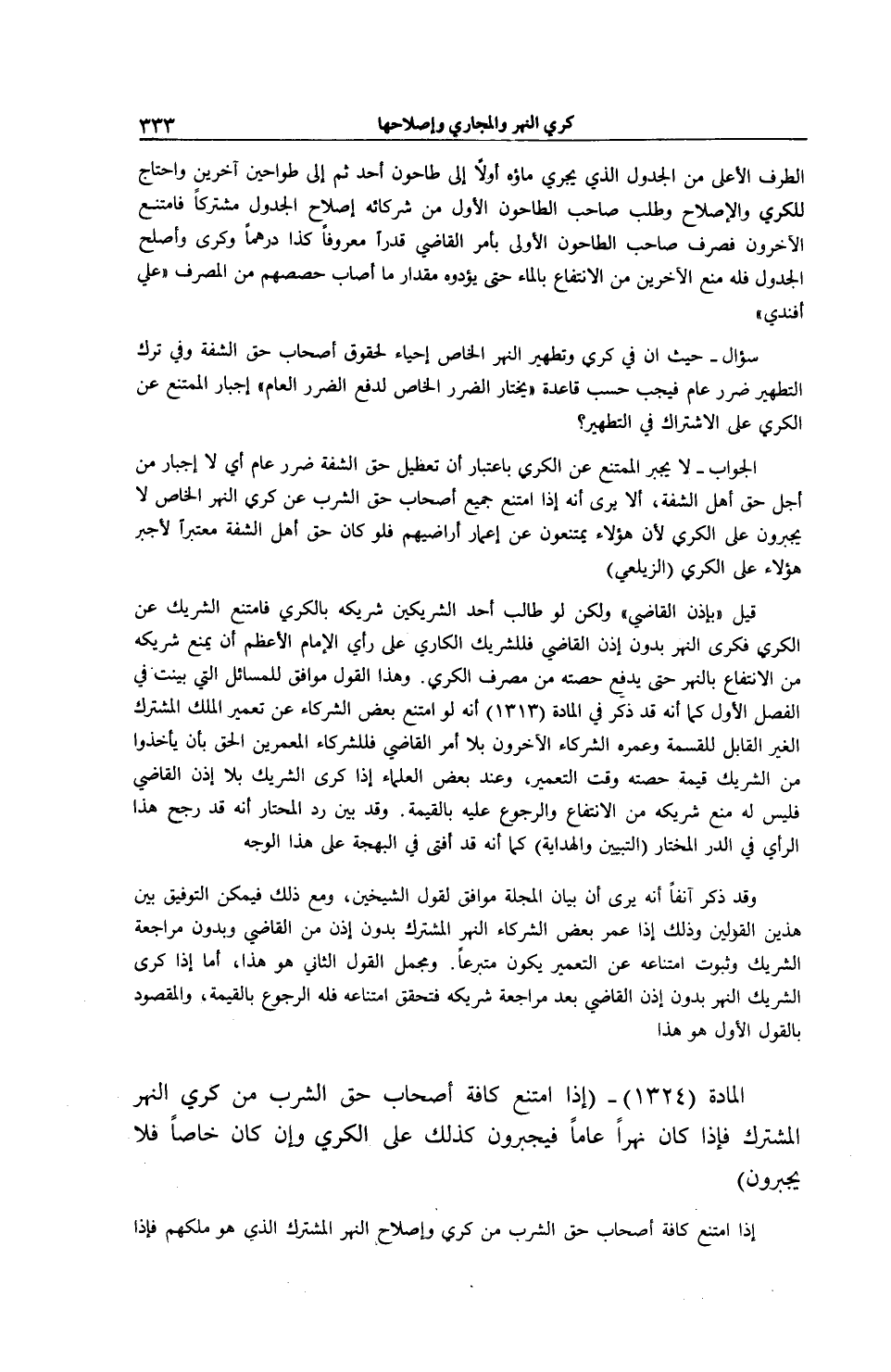 [ (الْمَادَّةُ 1324) امْتَنَعَ كَافَّةُ أَصْحَابِ حَقِّ الشِّرْبِ مِنْ كَرْيِ النَّهْرِ الْمُشْتَرَكِ]
