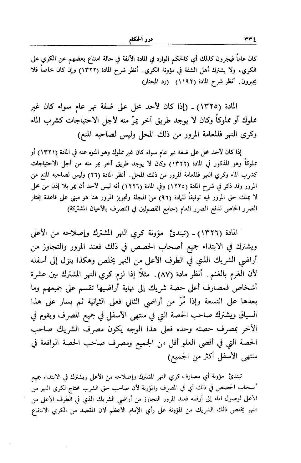 [ (الْمَادَّةُ 1326) تَبْتَدِئُ مَئُونَةُ كَرْيِ النَّهْرِ الْمُشْتَرَكِ وَإِصْلَاحِهِ مِنْ الْأَعْلَى]